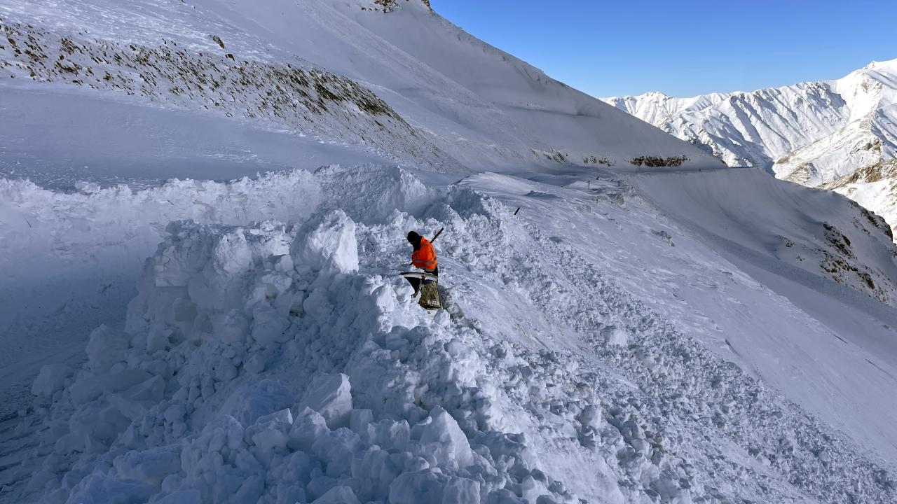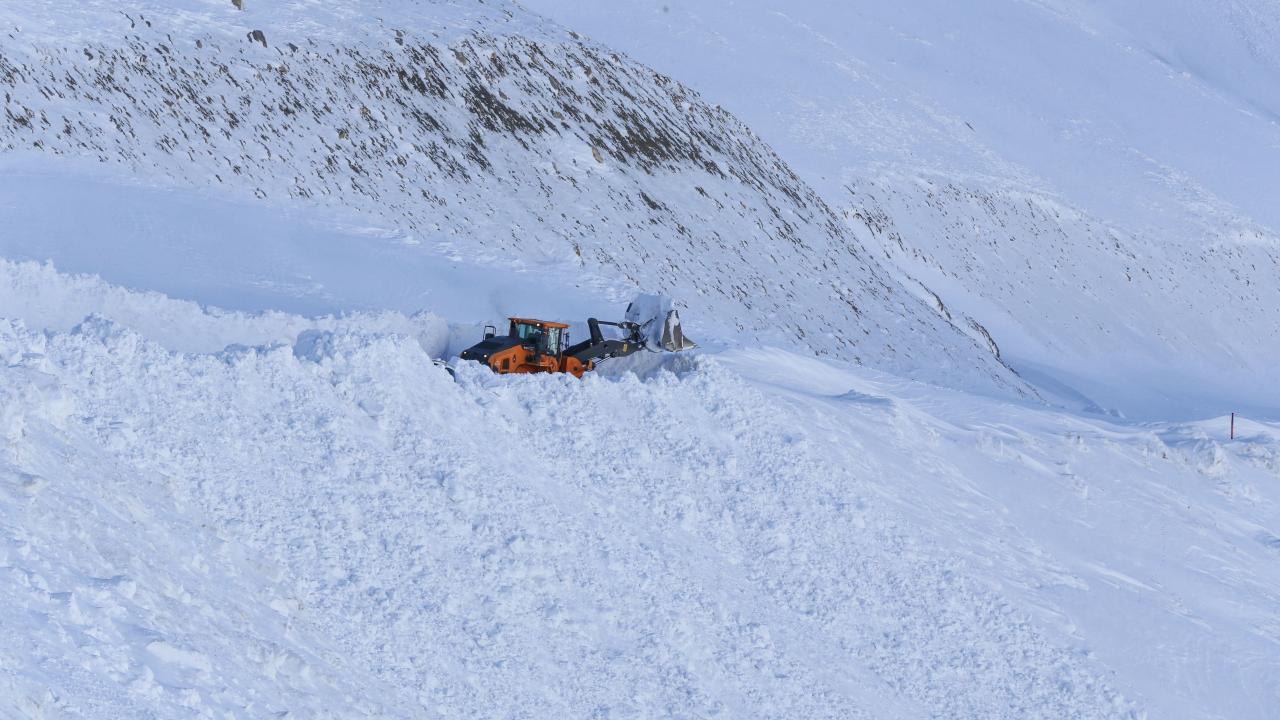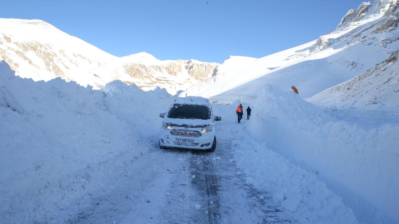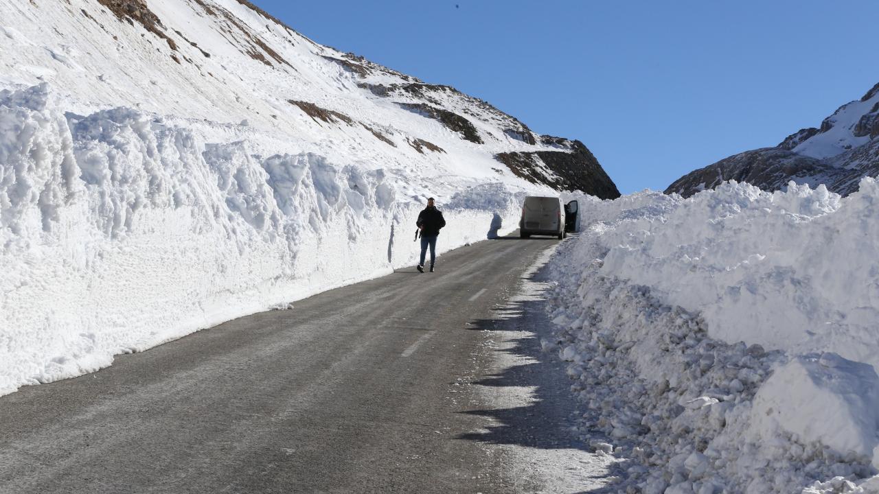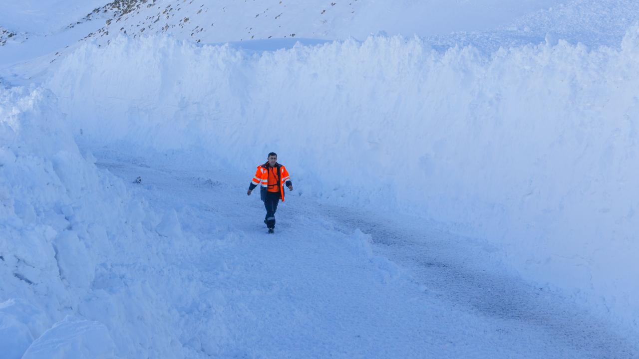 Kar kalınlığının yer yer 3 metreyi bulduğu 3 bin rakımlı Karabet Geçidi’ne ulaşan ekipler, düşen çığlar nedeniyle yolda biriken kar kütlelerini temizledi.