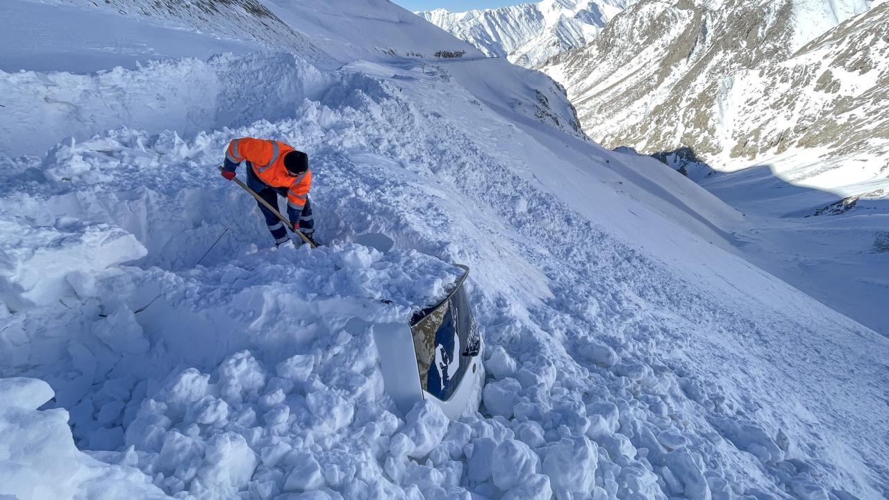 Van'da yoğun kar ve tipi nedeniyle kapatılan Van-Bahçesaray kara yoluna düşen çığ nedeniyle, sürücüleri tarafından yola bırakılan 2 araç kar altında kaldı.