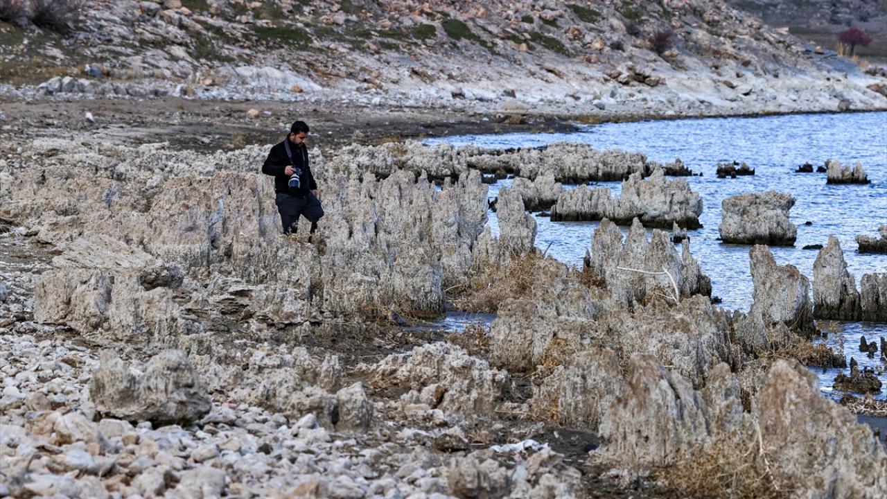 Suyun çekildiği kıyılarda birçok iskele ve tarihi yapının ortaya çıktığını anlatan Akkuş, oluşumu binlerce yıl süren mikrobiyalitlerin de kuraklıktan nasibini aldığını ifade etti.