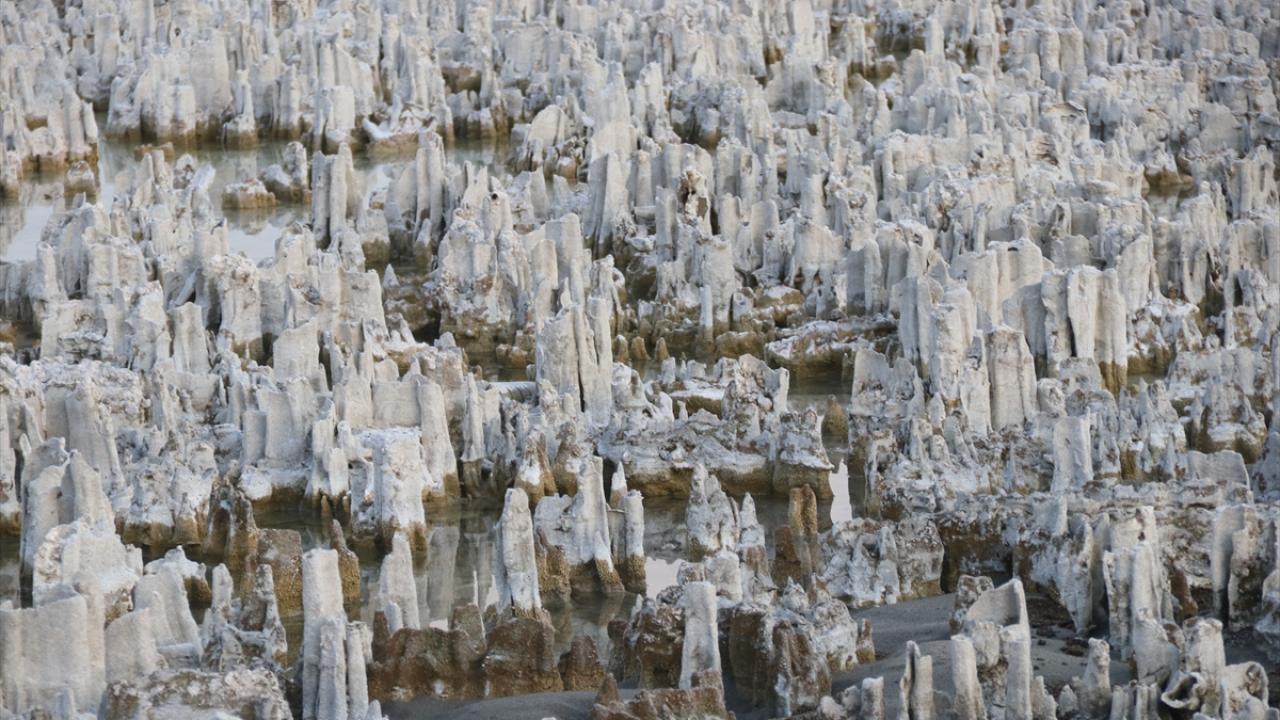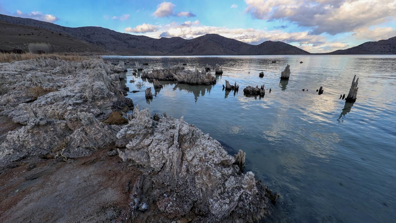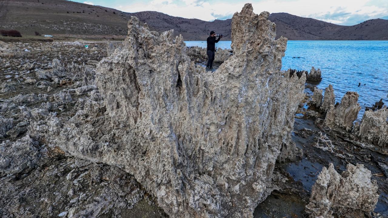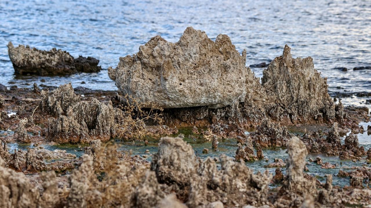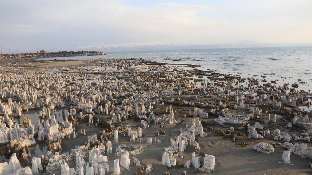 Küresel iklim değişikliği ve yağışların azalmasıyla su seviyesi düşen Van Gölü'ndeki mikrobiyalitler, artık suyun çekildiği alanlarda da görülebiliyor.