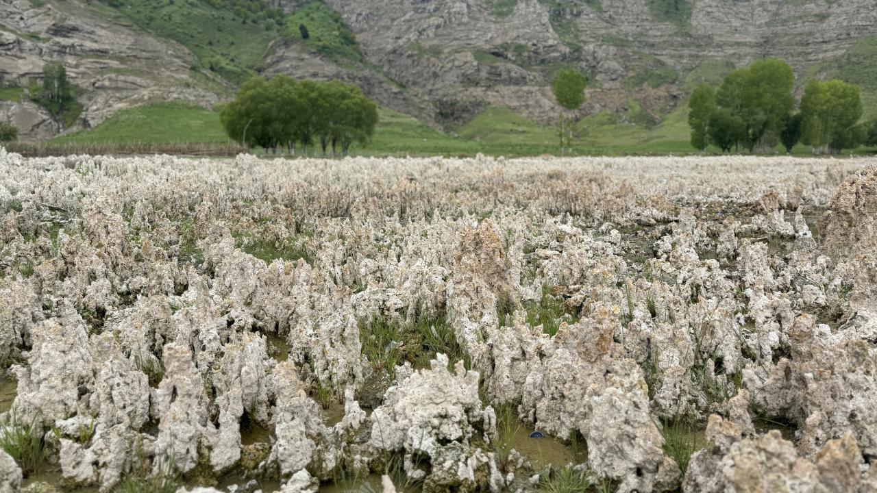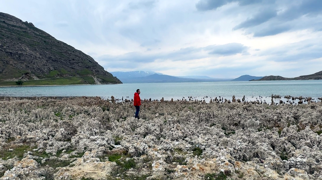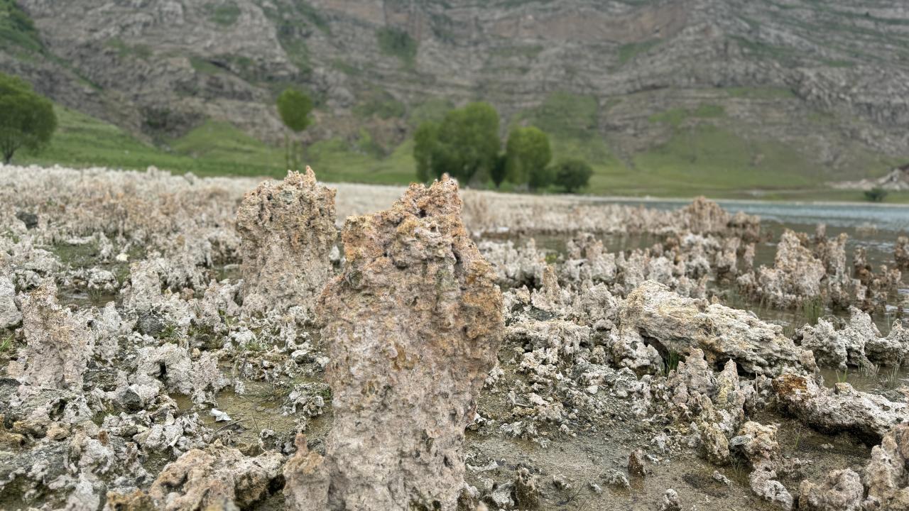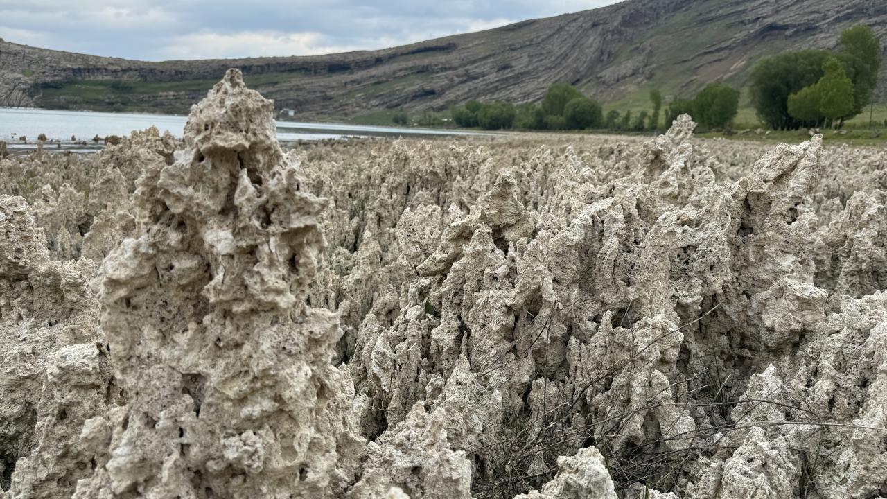 Dünyanın en büyük sodalı gölü olan Van Gölü’nde iklim değişikliğine bağlı yaşanan kuraklık nedeniyle suların çekilmesiyle ortaya çıkan mikrobiyalitler dikkat çekti.