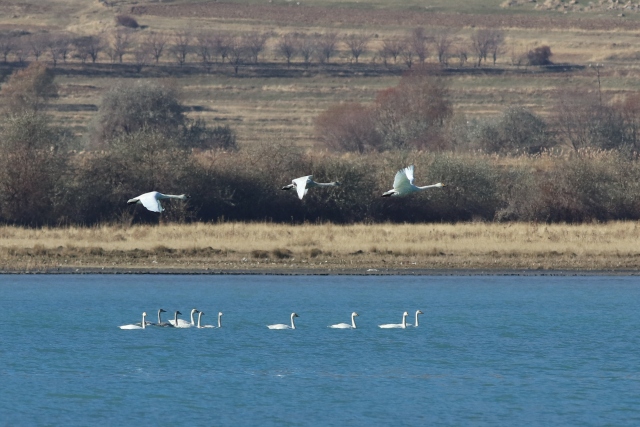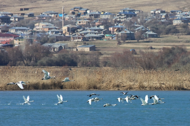 Yüzlerce kuş türünün bulunduğu Van Gölü Havzası, her yıl kış aylarında konaklamak için bölgedeki sulak alanlara gelen beyaz kuğuları da misafir ediyor. Van Gölü kıyısındaki Göründü Deltası, Erciş Çelebibağ Sazlığı ve Dönemeç Deltası ile Erçek Gölü'ne gelen beyaz kuğular, görsel şölen sunuyor. Kuğuları görüntülemek isteyen fotoğraf tutkunları ve kuş gözlemcileri, kuğuların bulunduğu alanda bekleyerek en güzel kareleri çekmeye çalışıyor.