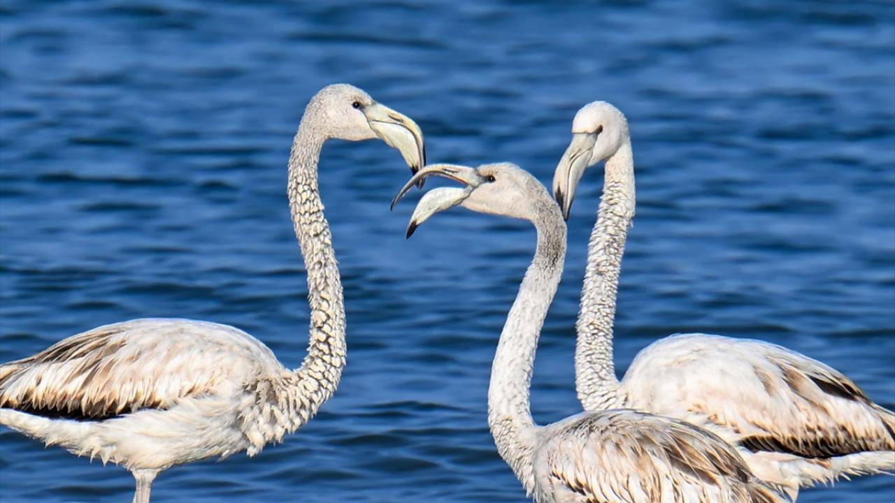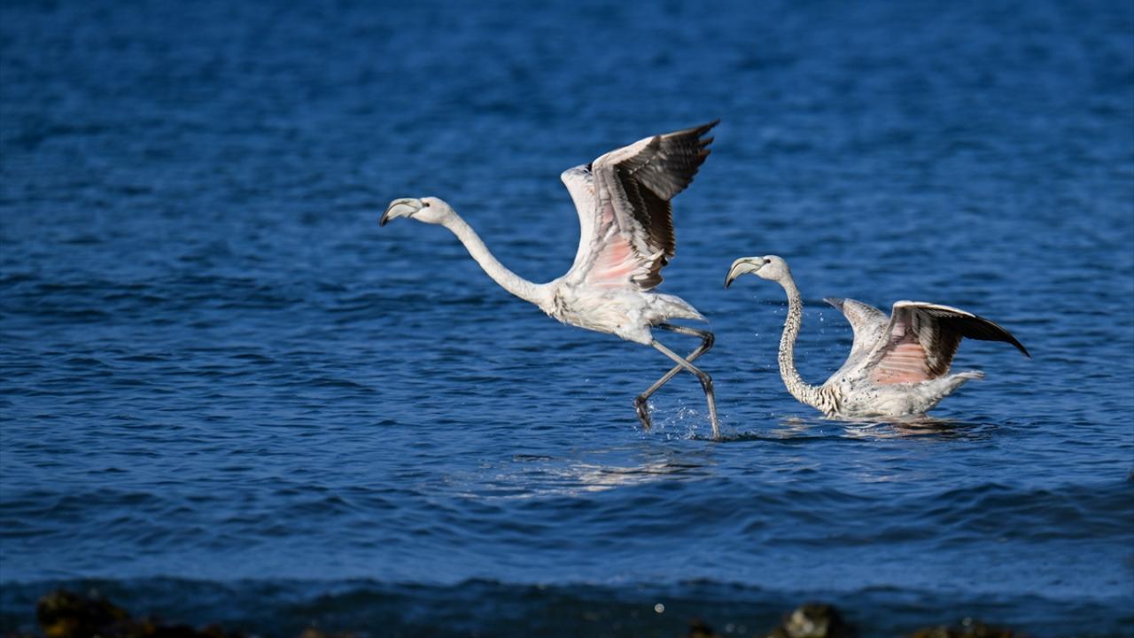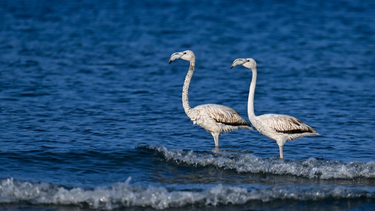 Kış mevsimine girilmesine rağmen hava sıcaklıklarının henüz çok düşmediği bölgede kalan flamingolar ve beyaz kazlar, Van Gölü`nün Gevaş ilçesi kıyıları ile İpekyolu ve Tuşba ilçesi sınırlarında yer alan Erçek Gölü`nde görüntülendi.