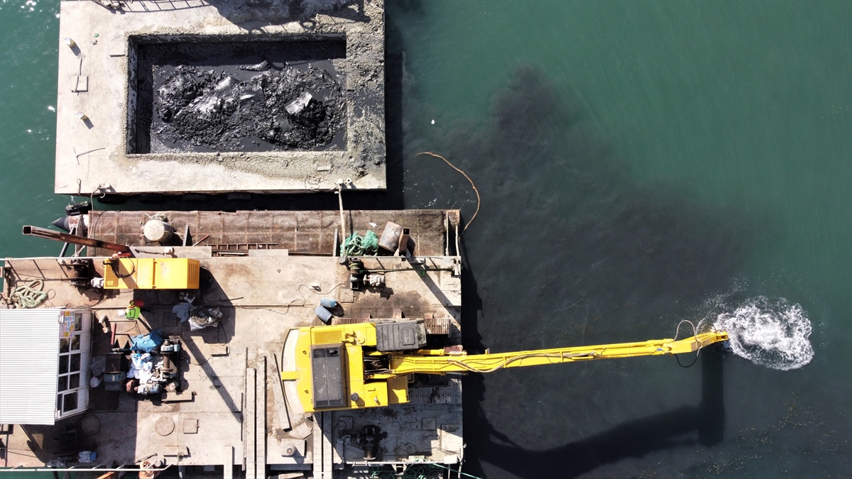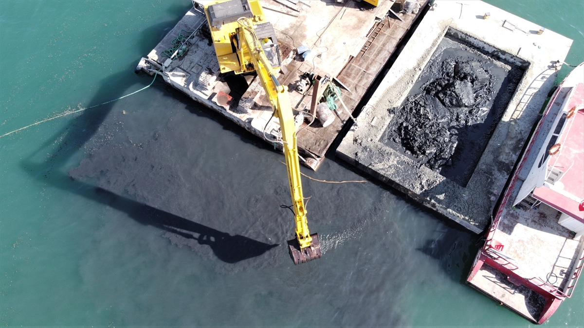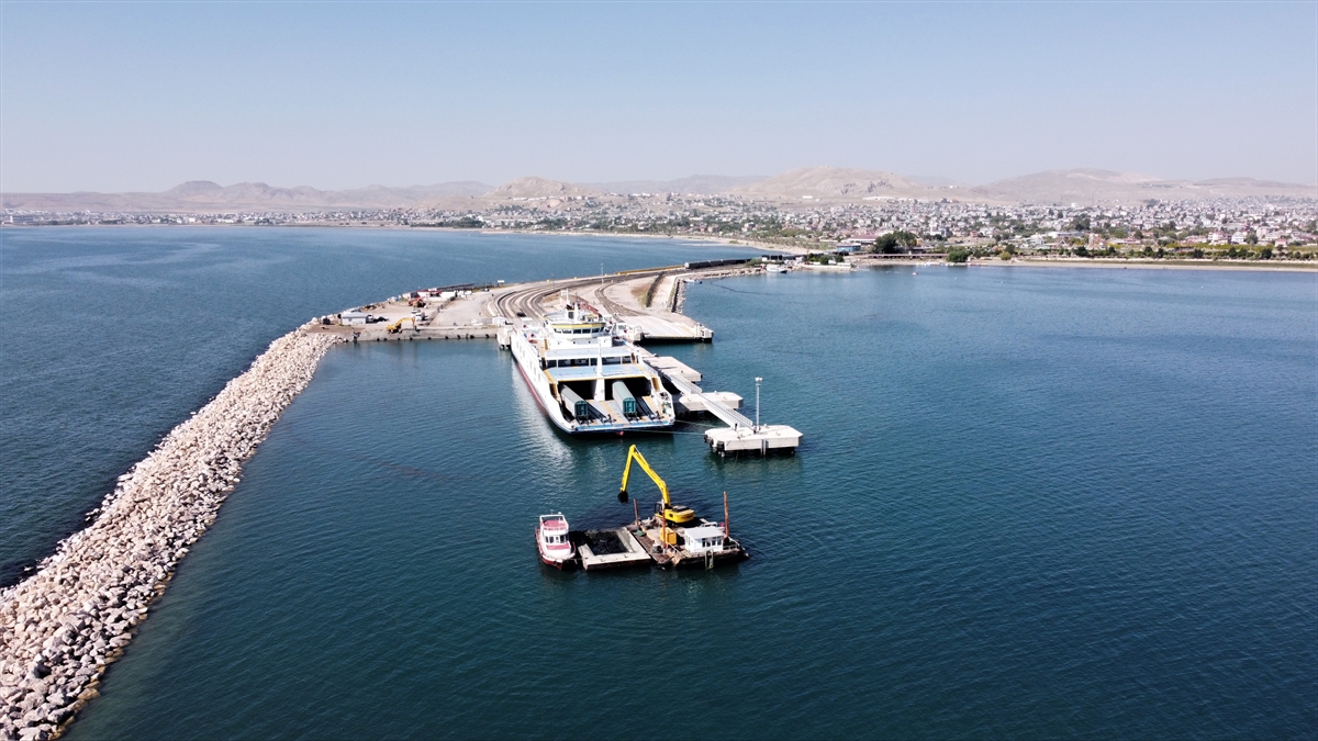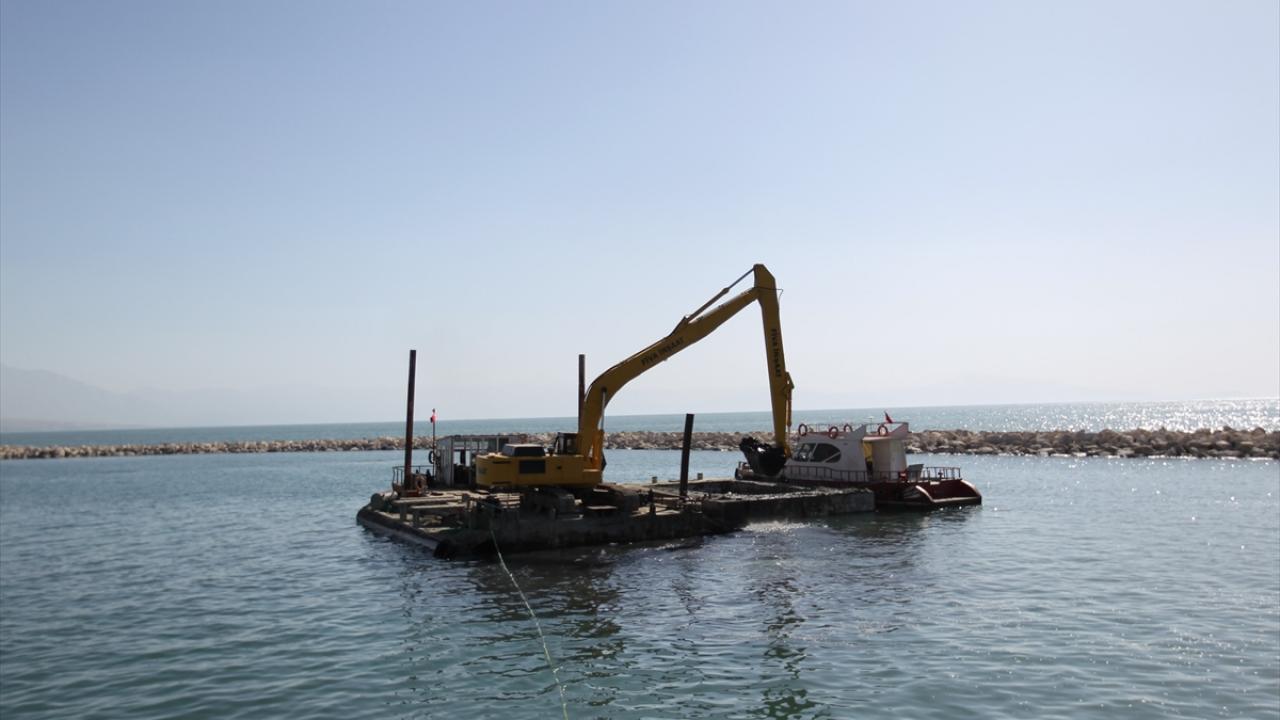 Van Gölü'nün kirlilikten kurtarılması amacıyla başlatılan dip çamuru temizleme çalışmaları kapsamında, İskele sahilinde 45 tonluk platform üzerindeki 17 metrelik paletli ekskavatörle 15 günde 6 bin metreküp balçık çıkarıldı.