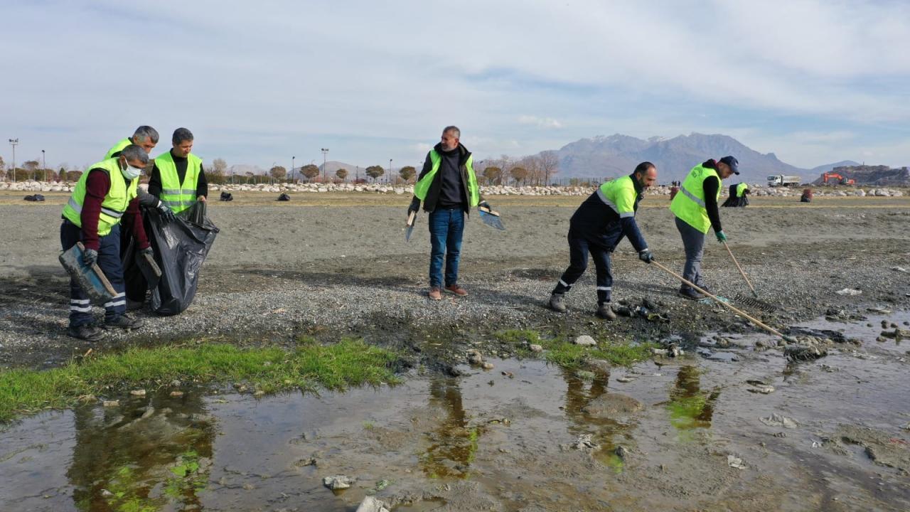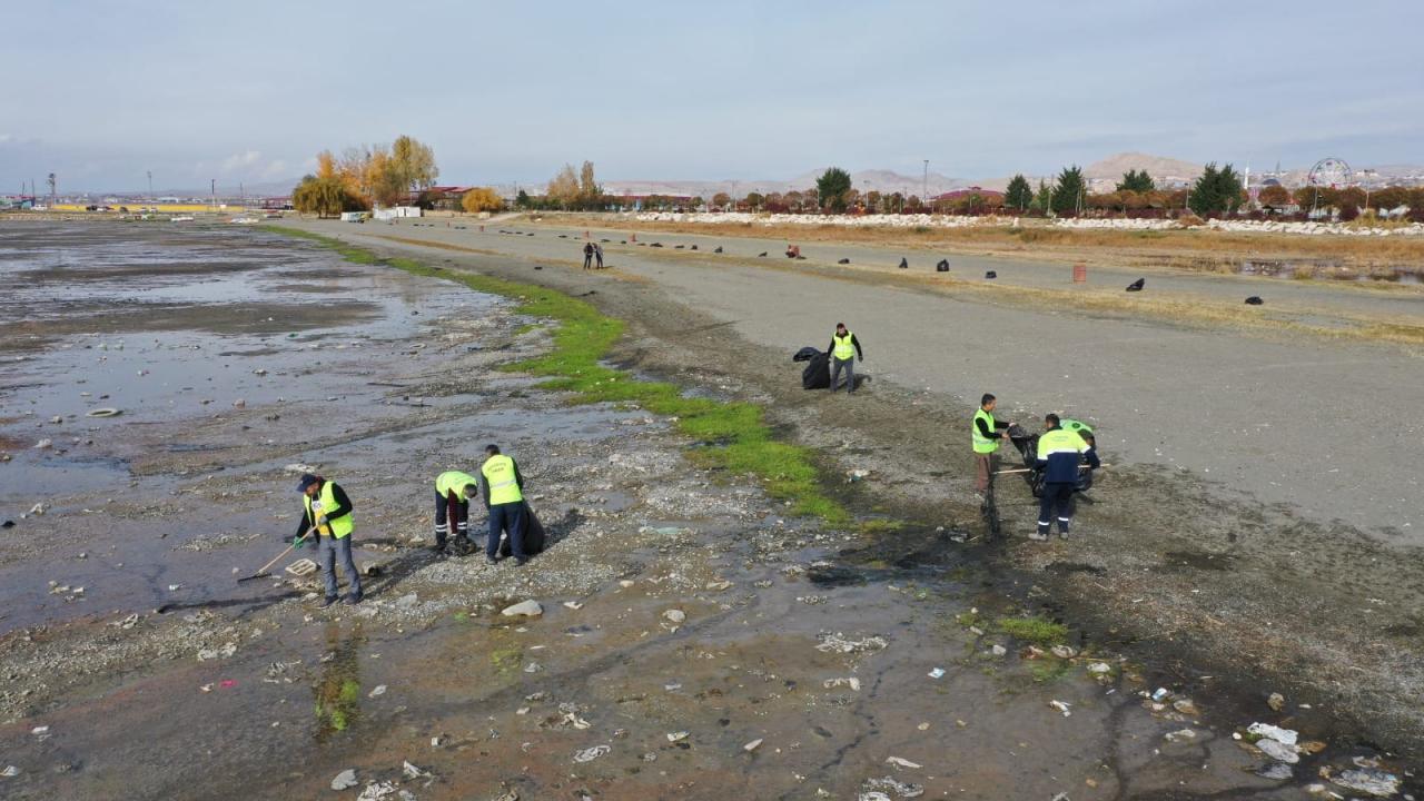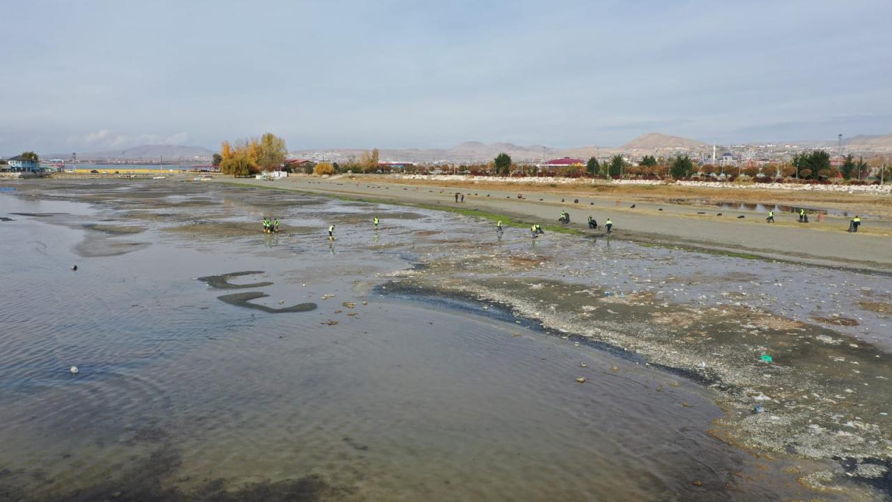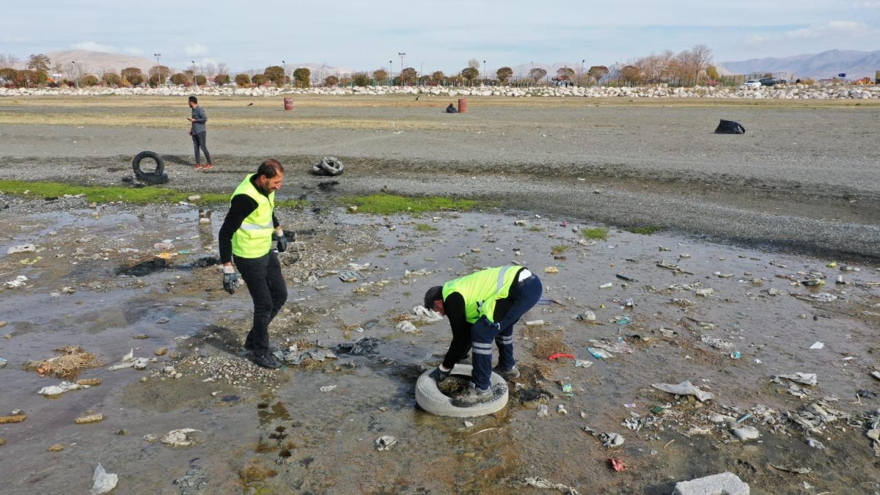 Çevre Koruma ve Kontrol Müdürlüğüne bağlı ekipler, göl kıyısında suların çekildiği bölgede yaklaşık 40 ton çöp toplayarak geri dönüşüme kazandırdı.