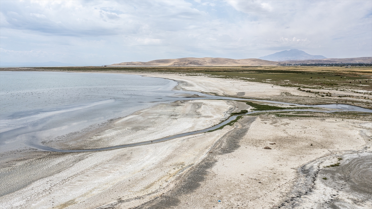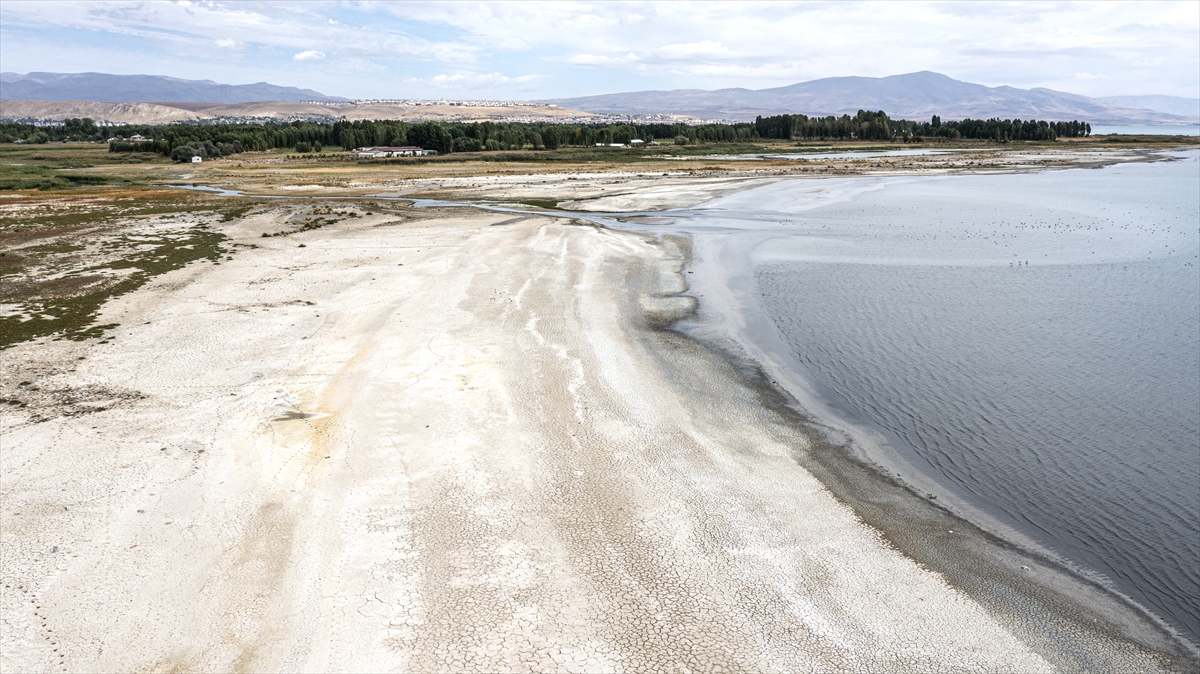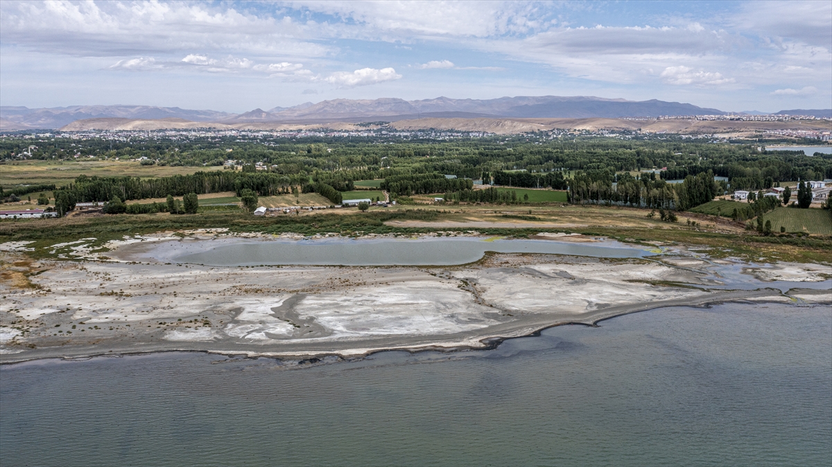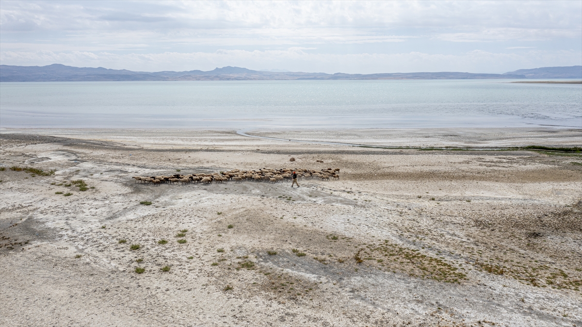 Türkiye'nin en büyük gölü olan ve yöre halkı tarafından "deniz" olarak adlandırılan Van Gölü, son yıllarda kuraklık sonucu kıyı bölgelerindeki çekilme nedeniyle küçülmeye devam ediyor.