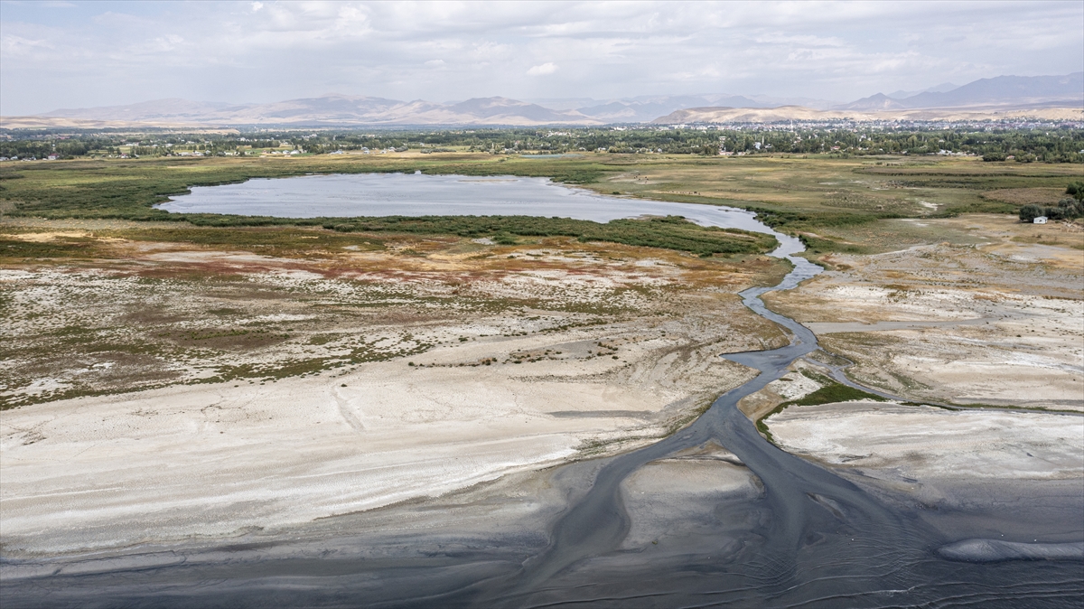 Yağışların azalması ve aşırı buharlaşma dolayısıyla önemli miktarda su kaybının yaşandığı gölün sığ noktalarındaki çekilme yüzlerce metreyi buluyor.