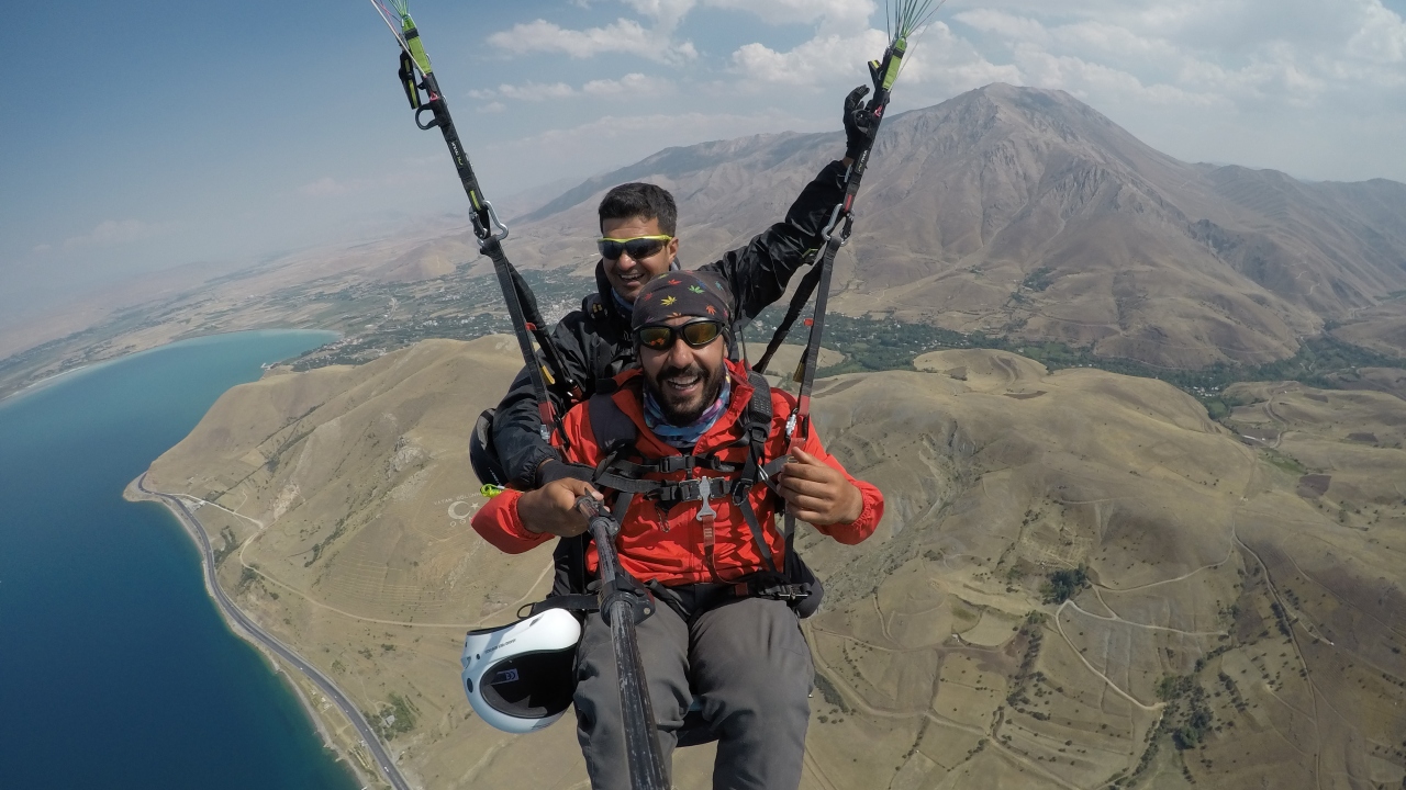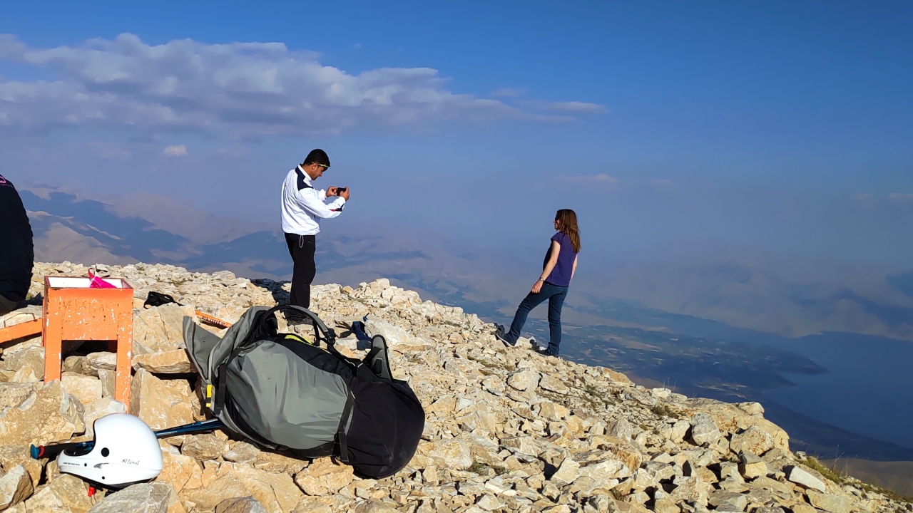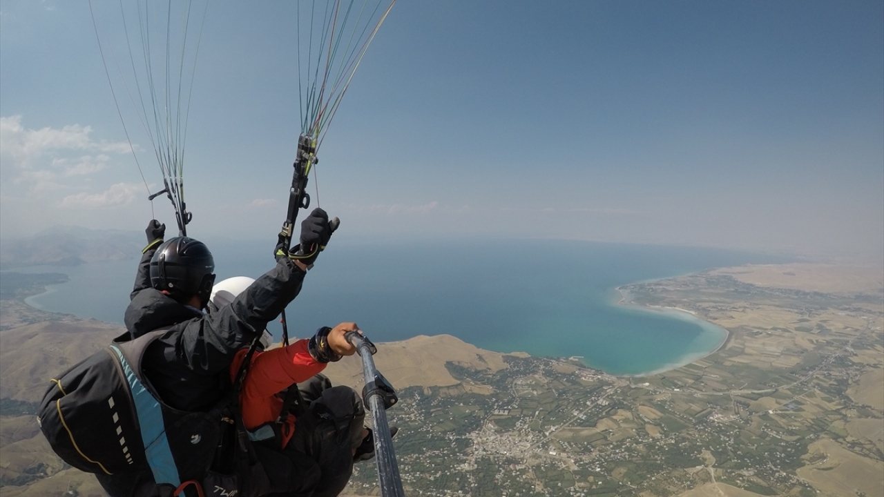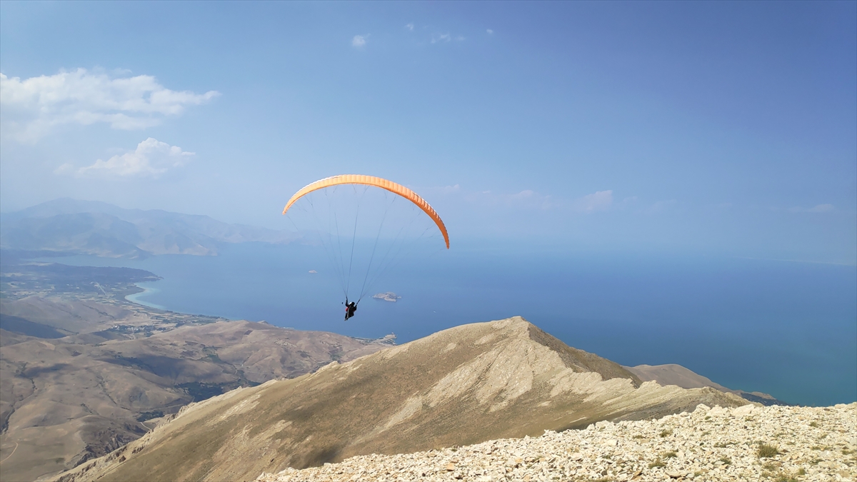 Van Gölü manzarası eşliğinde 3 bin 550 rakımlı Artos Dağı'nda yamaç paraşütü keyfi