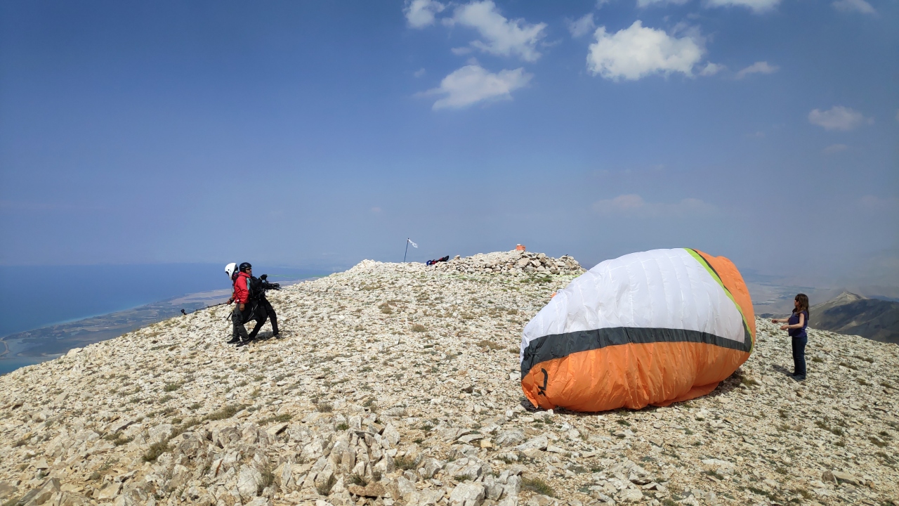 Van'ın 3 bin 550 rakımlı Artos Dağı, "gökyüzüne dokunmak" isteyen yamaç paraşütü tutkunlarını ağırladı.