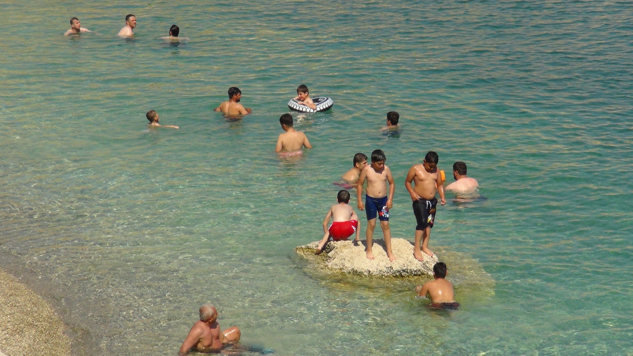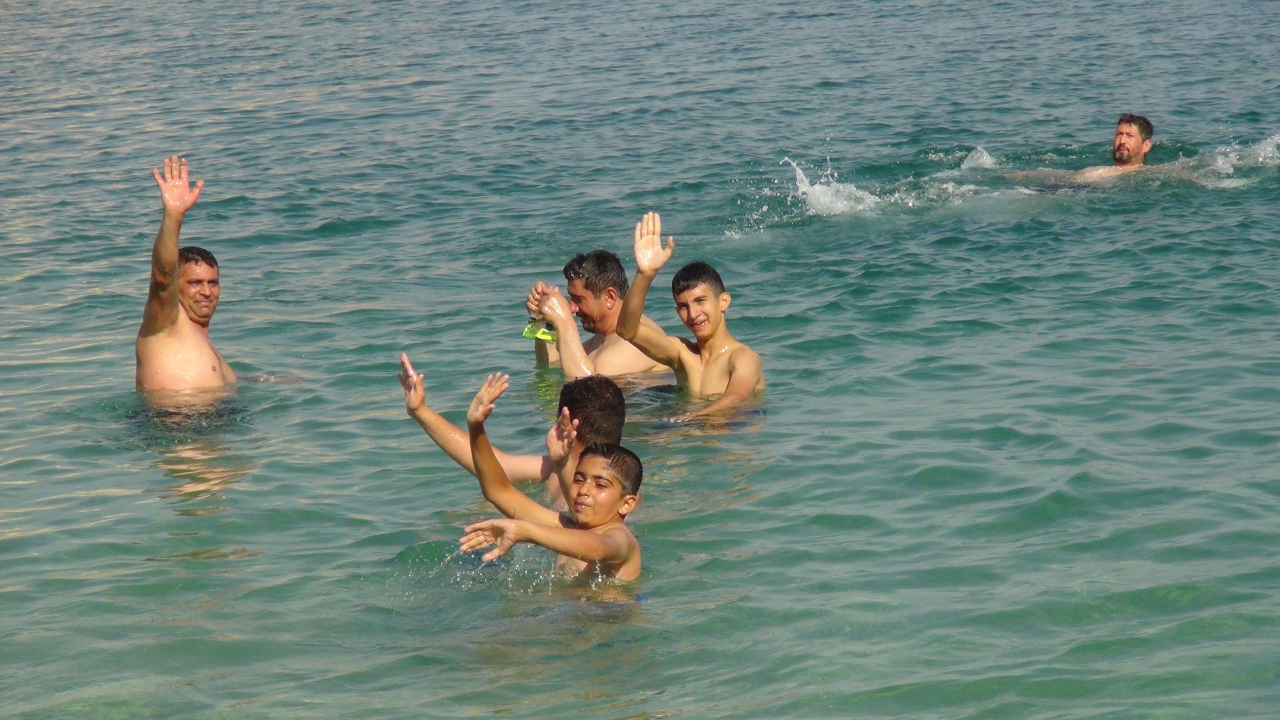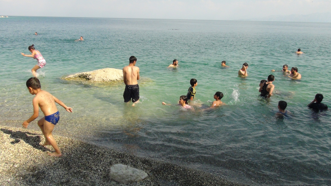 Van Gölü'ne kıyısı bulunan Bitlis'te yaz mevsiminin gelmesiyle sıcak havadan bunalan vatandaşlar, kendilerini gölün serin sularına bırakıyor.