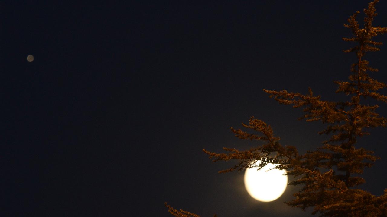 Bitlis'in Ahlat ilçesinde akşam saatlerinde Van Gölü semalarında beliren dolunay, görenleri hayran bıraktı.
