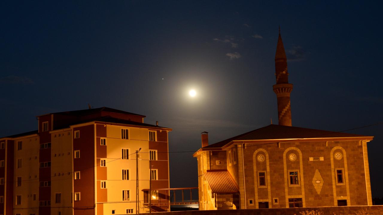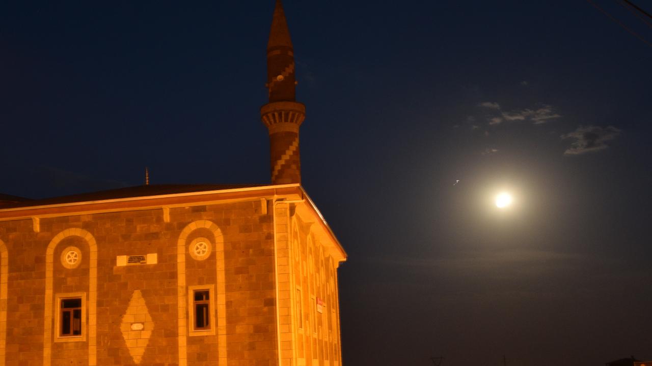 Van Gölü semalarından yükselen dolunay hayran bıraktı