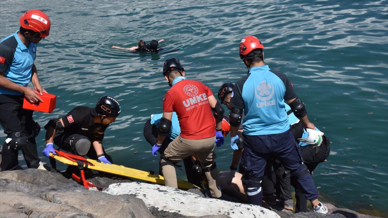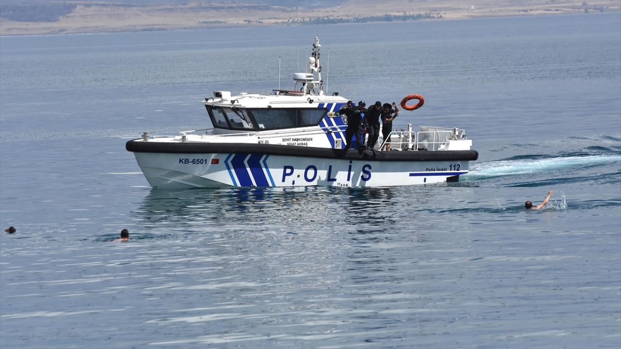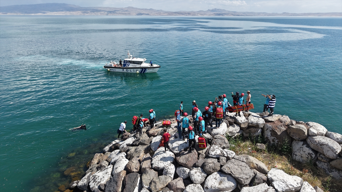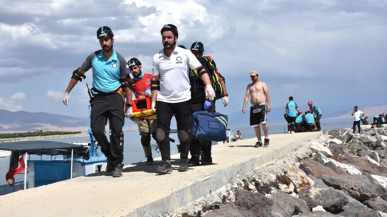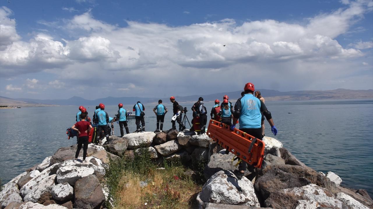 Van Gölü sahilinde gerçekleştirilen tatbikata, Van, Bitlis, Ağrı ve Hakkari`den UMKE, AFAD, polis, itfaiye ve Türk Kızılay ekipleri katıldı.
