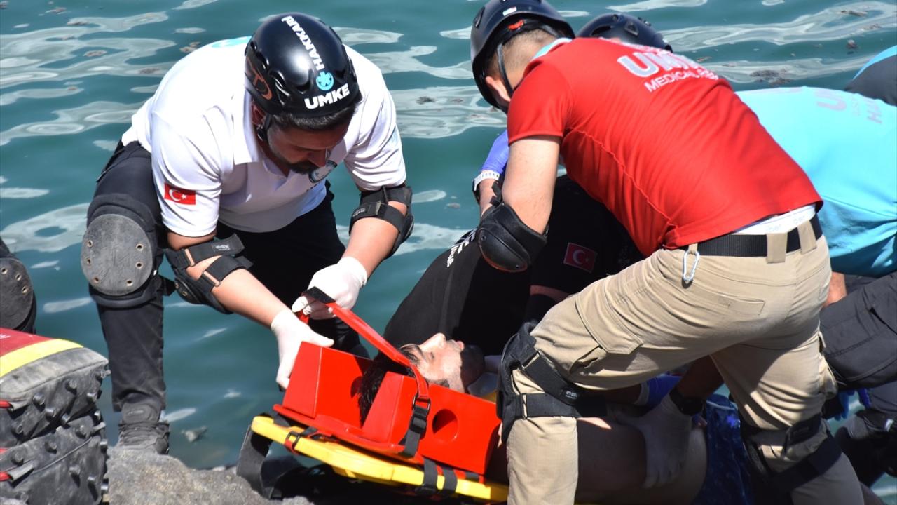 Bunun üzerine bölgeye yönlendirilen deniz polisleri, suda kalanları kurtararak sahilde bekleyen UMKE görevlilerine teslim etti.