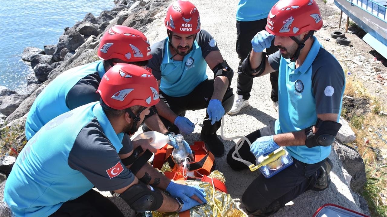 "Tatbikatımızda Van, Ağrı, Bitlis ve Hakkari illeri yer almaktadır. UMKE koordinasyonunda tatbikatın startını verdik. Suda arama kurtarma etabını gerçekleştirdik. Bu etabımızda deniz polisimizden yardım alarak 4 yaralı çıkardık. Yaralılarımıza alanda ilk müdahaleyi yaptıktan sonra onları acil müdahale çadırımıza götürdük. Yaralılar, ilk müdahalenin ardından ambulanslarla hastanelere sevk edildi."