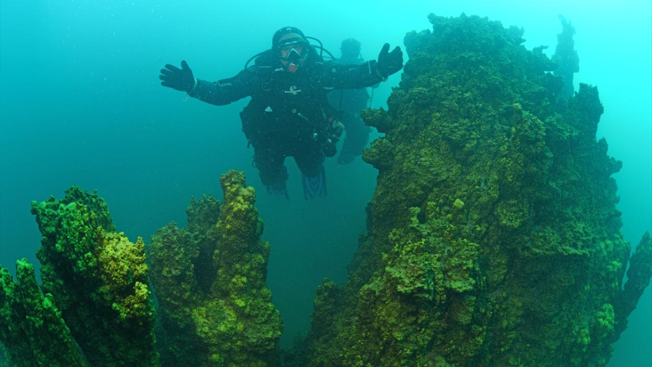 Su altı belgesel yapımcısı ve görüntü yönetmeni Tahsin Ceylan ile ekibi, Cumhuriyet'in 100. yılı dolayısıyla Van Gölü'ne özel dalış gerçekleştirerek mikrobiyalitleri görüntüledi.