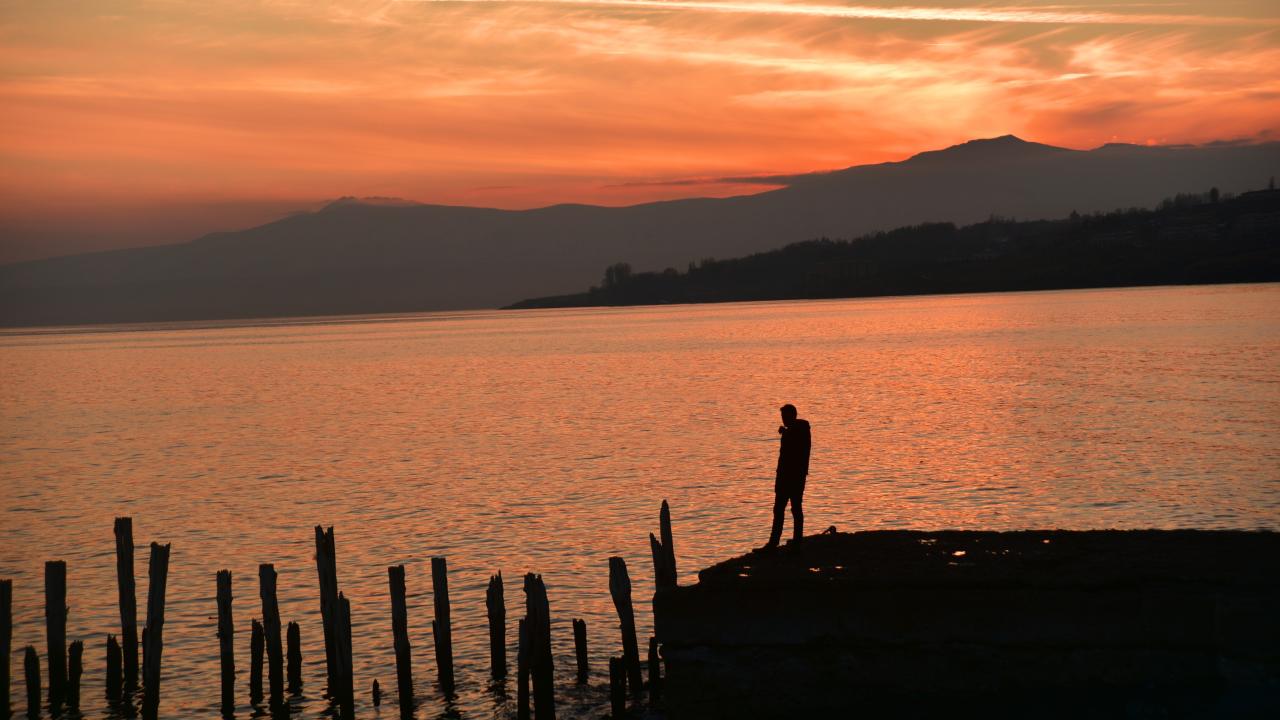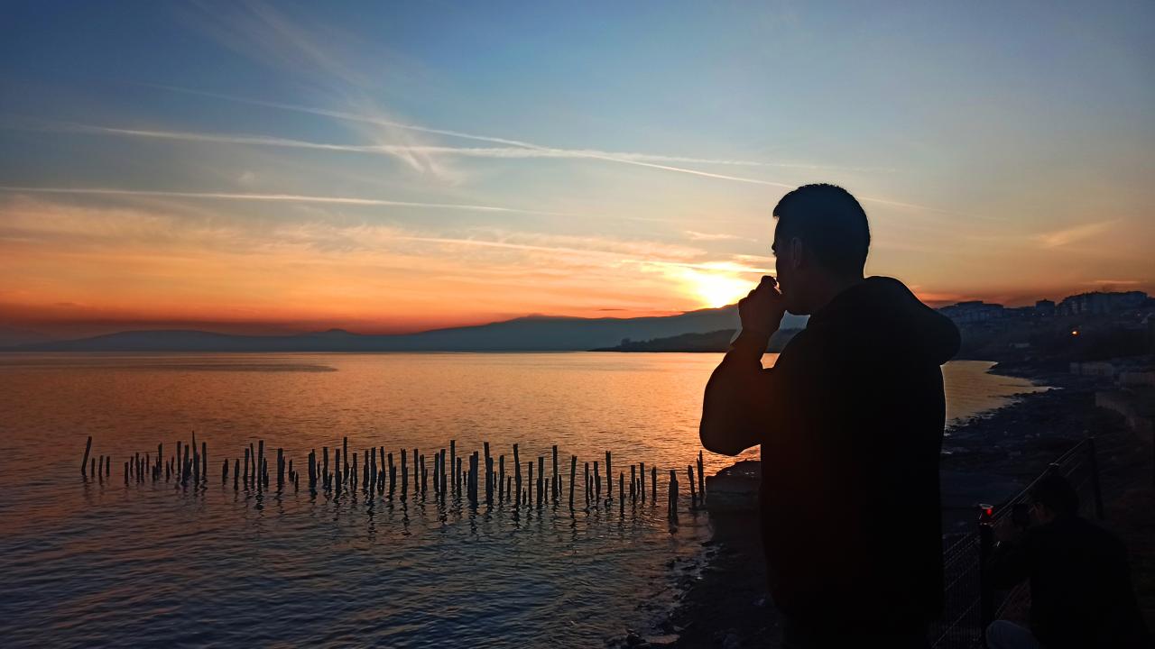 Arkadaşları ile birlikte sahildeki eski iskelede gün batımının oluşturduğu güzel görüntüyü izleyen ve fotoğraflayan Ahmet Yamlı, “Ahlat’ta Van Gölü’nün kıyısında iskeledeyiz şu anda. Hem eski iskele hem de yeni iskele gün batımını izlemek için gerçekten çok güzel bir yer. Bizde bu saatte gün batımını izlemek ve fotoğraflamak için buraya geldik. Gerçekten bu güzelliğin herkes tarafından görülmesi gerekiyor. Bizde herkesi bu güzelliği görmek için buraya davet ediyoruz” dedi.