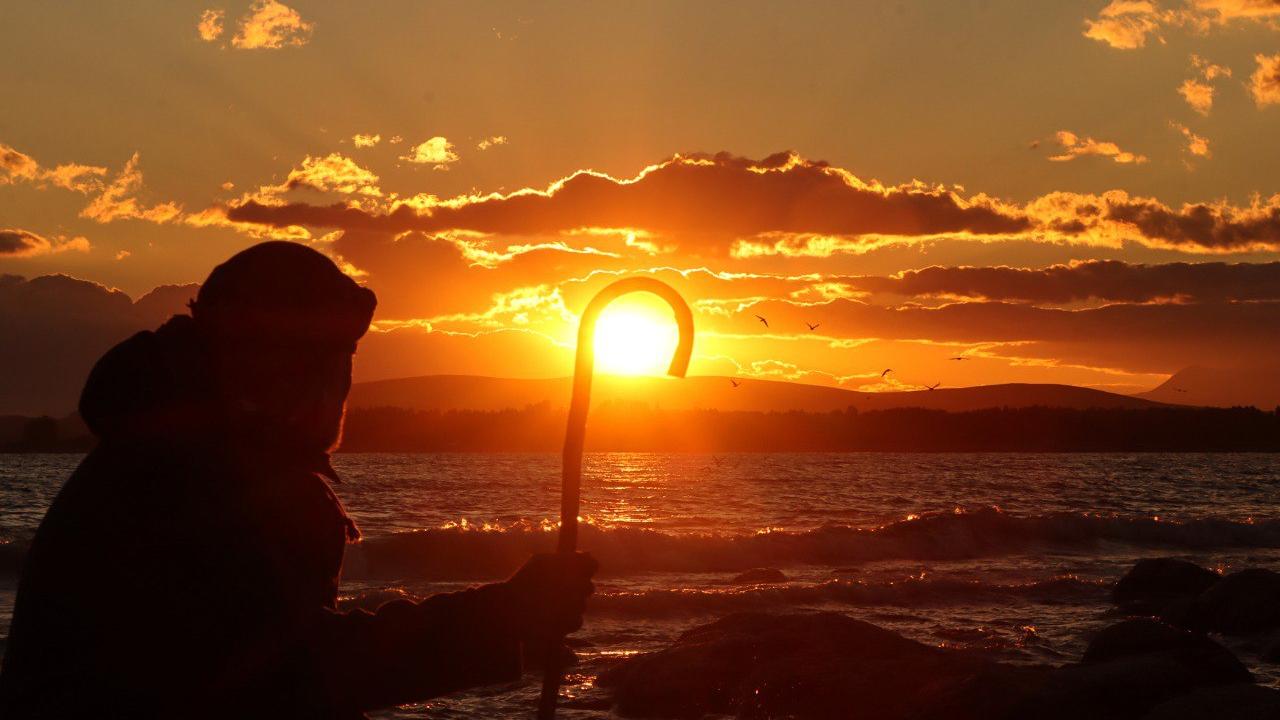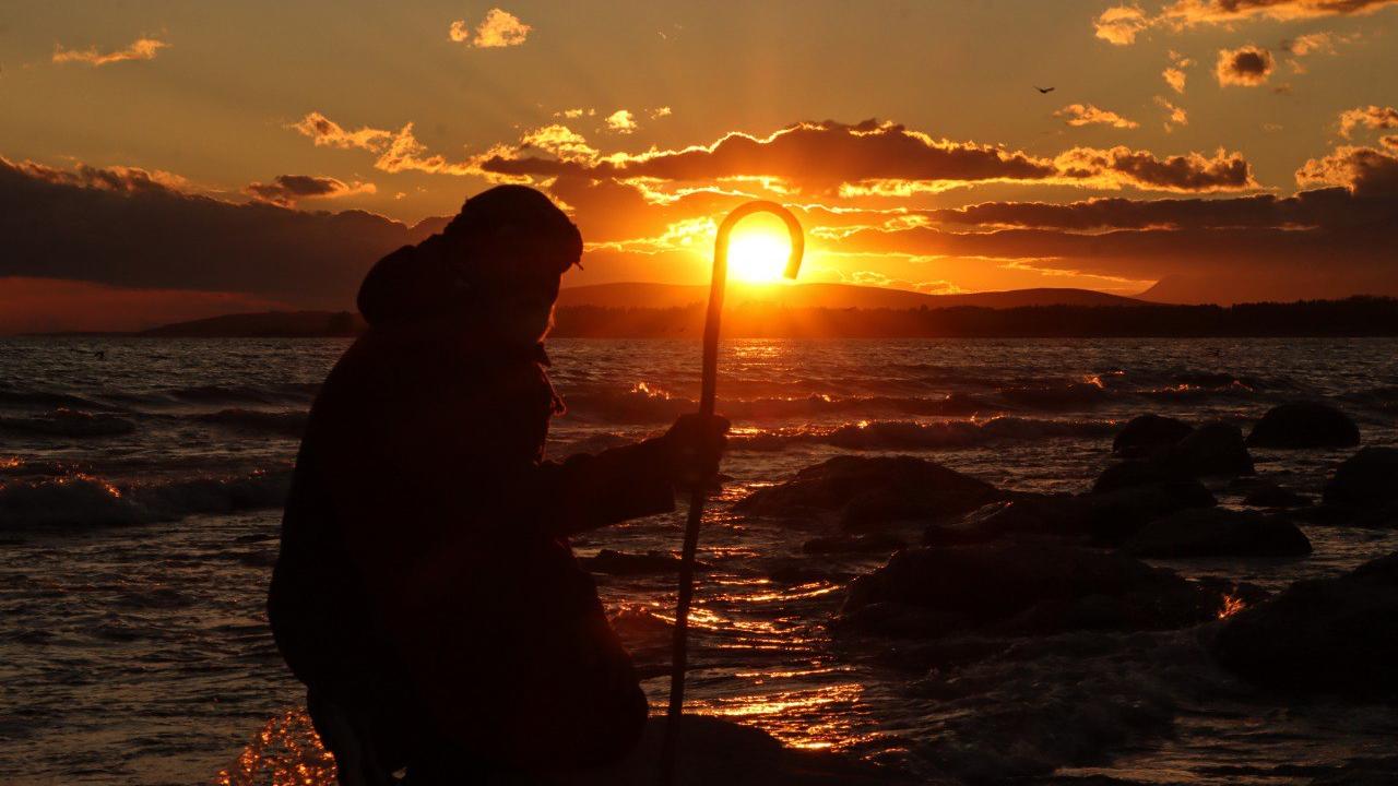 Van'ın Erciş ilçesinde, günbatımının Van Gölü'nde oluşturduğu kızıllık seyrine doyumsuz güzellik oluşturuyor.