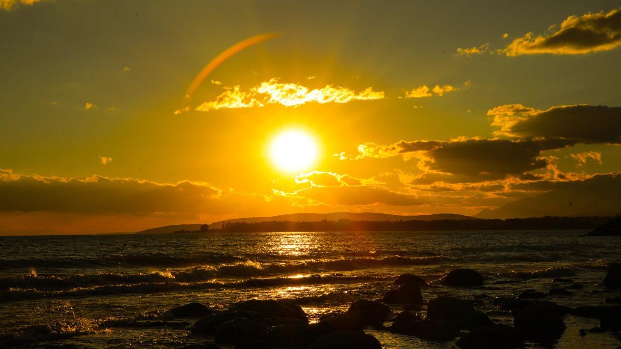 Van Gölü'nde günbatımı seyrine doyumsuz güzellik oluşturuyor