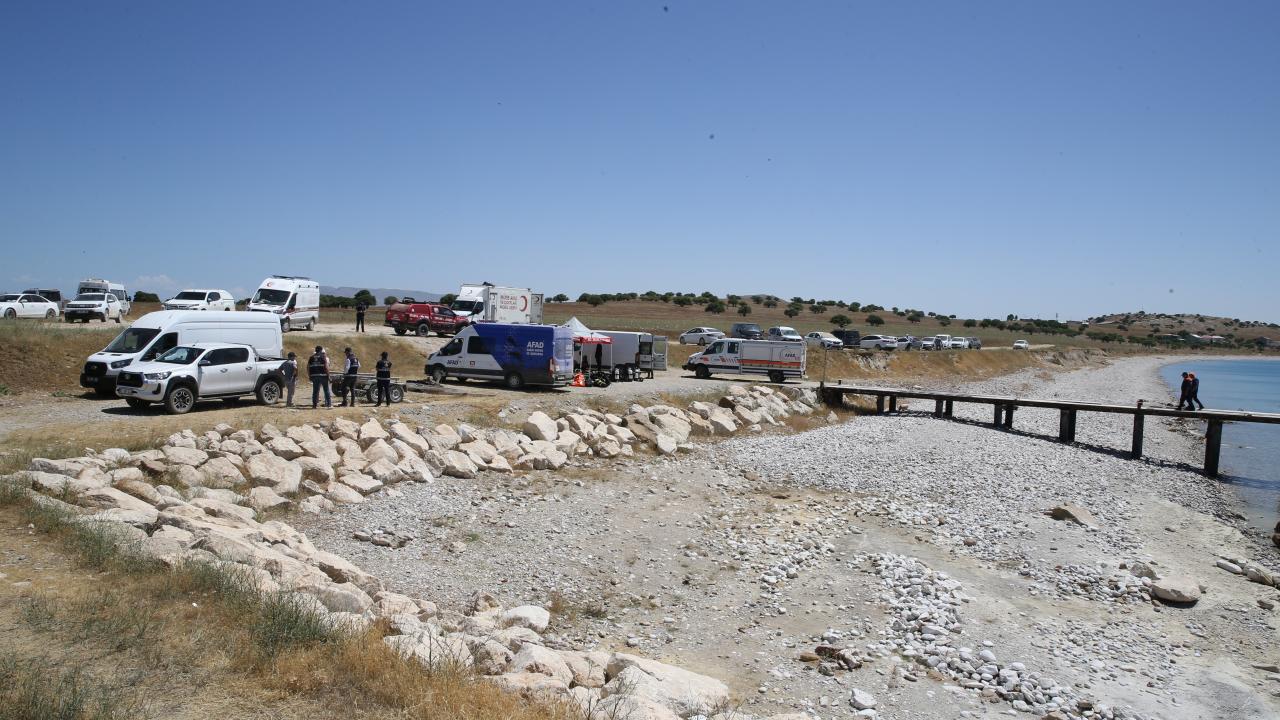112 Acil Sağlık ekiplerinin hazır bekletildiği bölgede Sahil Güvenlik Karadeniz Bölge Komutanlığı ekiplerince getirilen yanal taramalı sonar (YTS) cihazı ve Van Gölü Sahil Güvenlik Komutanlığının su altı robotu (ROV) ile gölde arama yapılıyor.