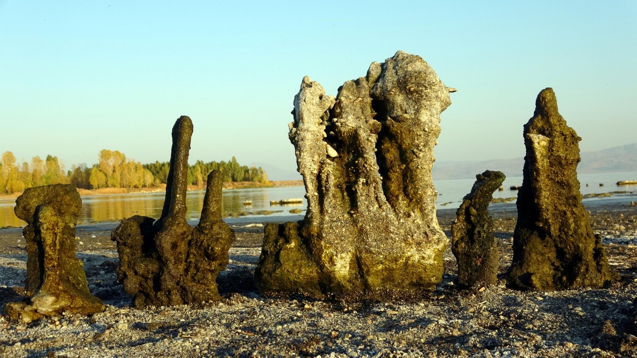 Van Gölü'nde sular çekilince mikrobiyalitler ortaya çıktı