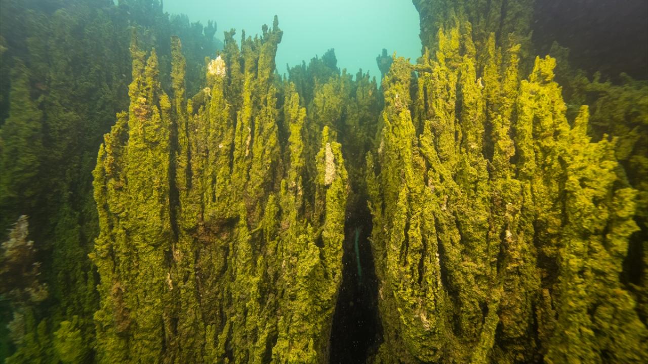 Bitlis'in Ahlat ilçesinde Sahil Güvenlik Komutanlığı Dalış Emniyet Güvenlik ve Arama Kurtarma (DEGAK) ekibi tarafından tespit edilen yeni mikrobiyalit (Dikit) kolonisi, su altı görüntü yönetmeni ve belgesel yapımcısı Tahsin Ceylan ve ekibi tarafından görüntülendi.