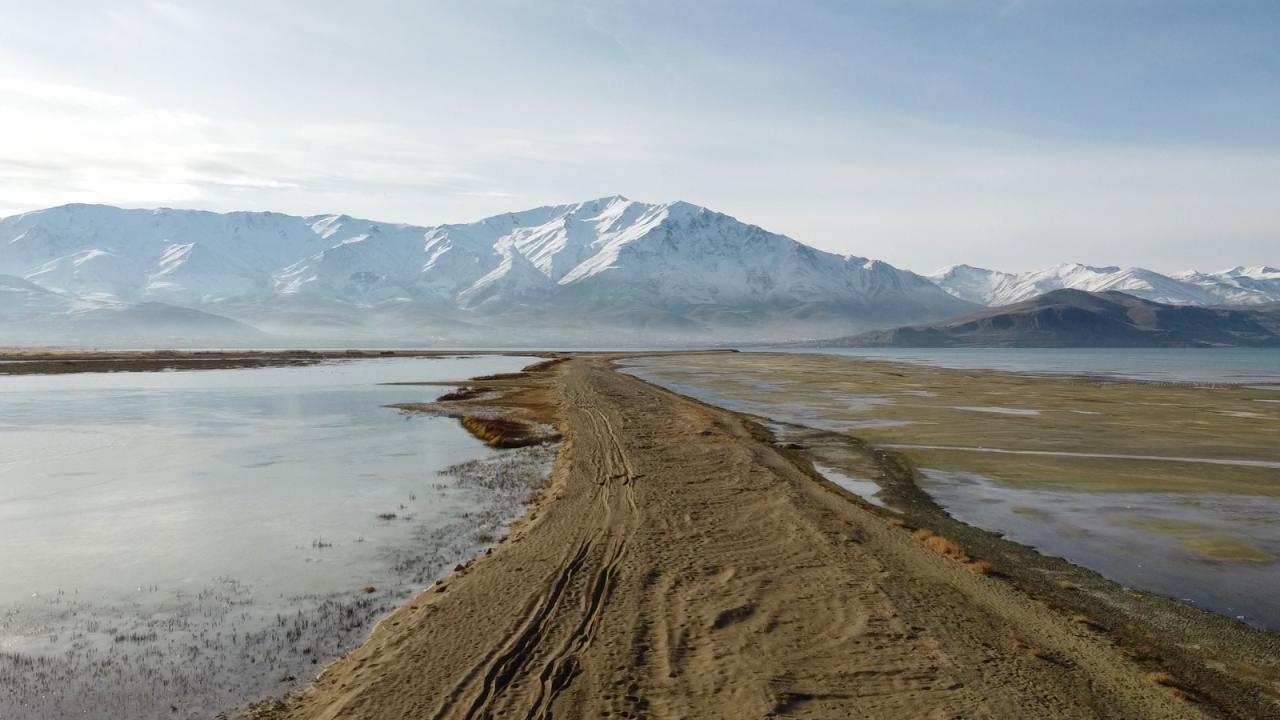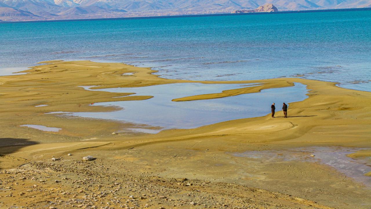 Van Gölü'ndeki çekilme nedeniyle su altındaki bazı alanlar kara parçasına dönüşürken, geçen yıl ve bugünlerde çekilen fotoğraflar aradaki farkı ortaya koydu.