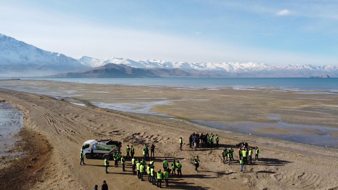 Türkiye`nin en büyük gölü olan Van Gölü`nde suyun sığ olduğu noktalarda yer yer 2 kilometreye kadar çekilmeler oldu.