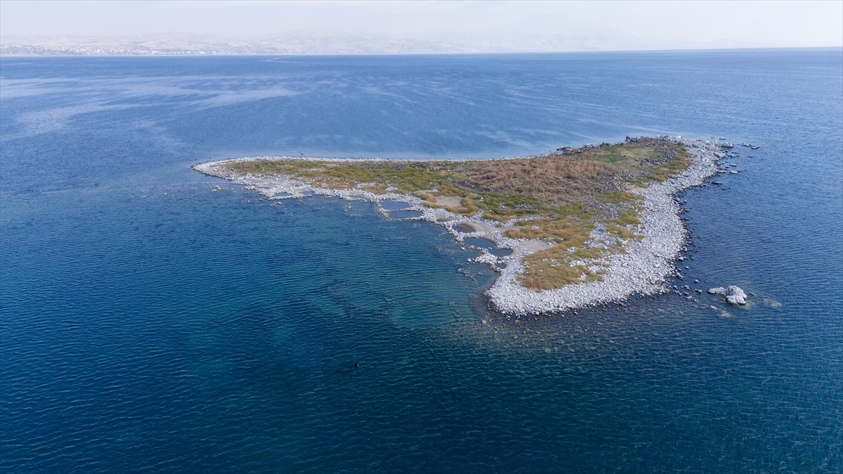 Sıcaklıkların artmasına bağlı buharlaşma ve yağışların azalmasıyla seviyesinde düşüş yaşanan Van Gölü`nün kıyı kesimlerinde, geçmişte su altında kalan yapılar görünür hale geldi.