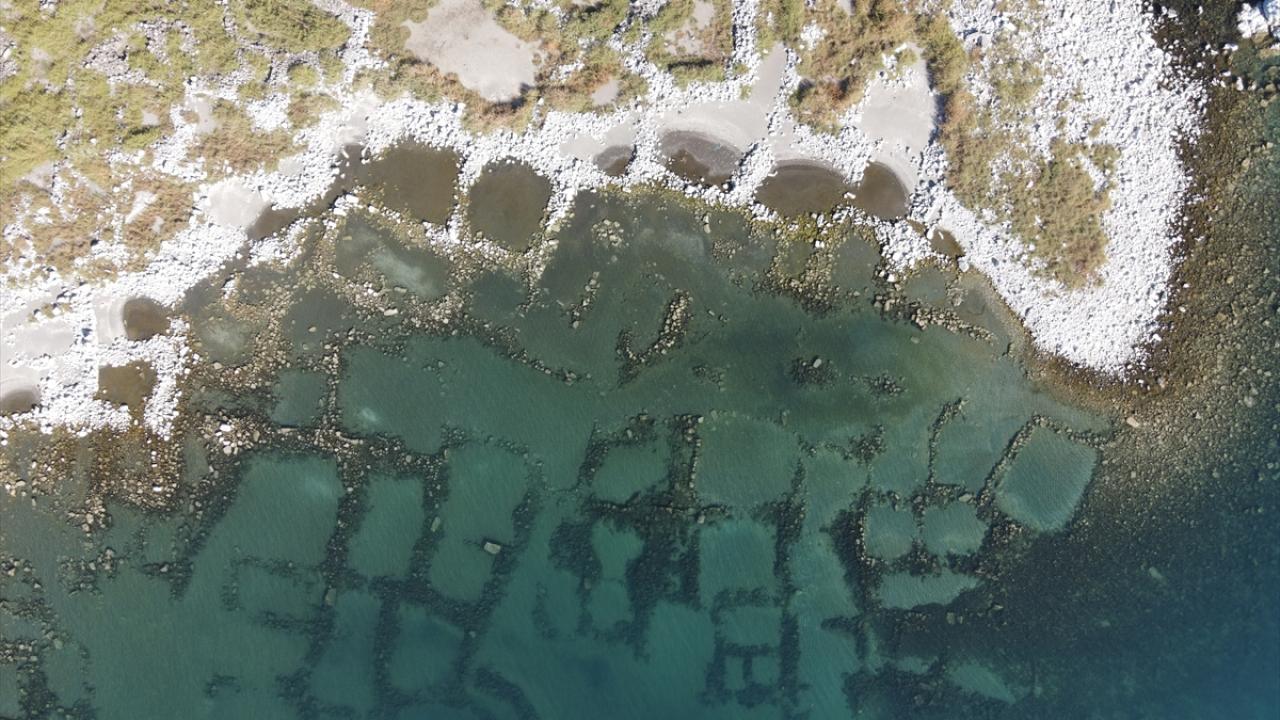 Van Gölü'nde kuraklığın etkisiyle yaşanan çekilme sonucu Bitlis kıyılarında görünür hale gelen su altındaki bazı yapı kalıntılarında görüntülü belgeleme çalışması yapıldı.