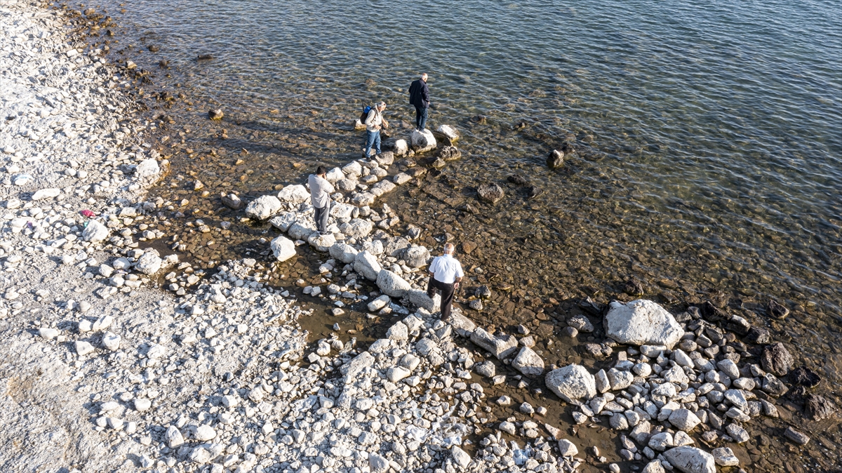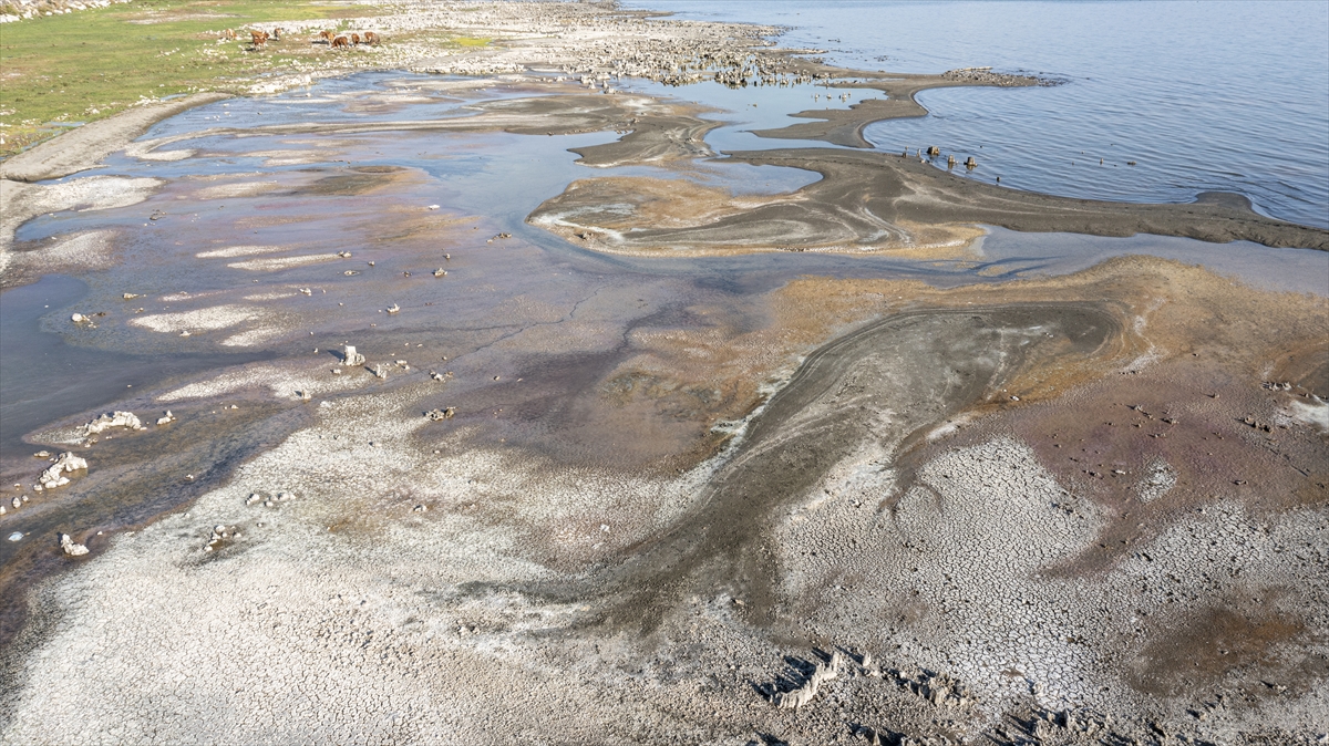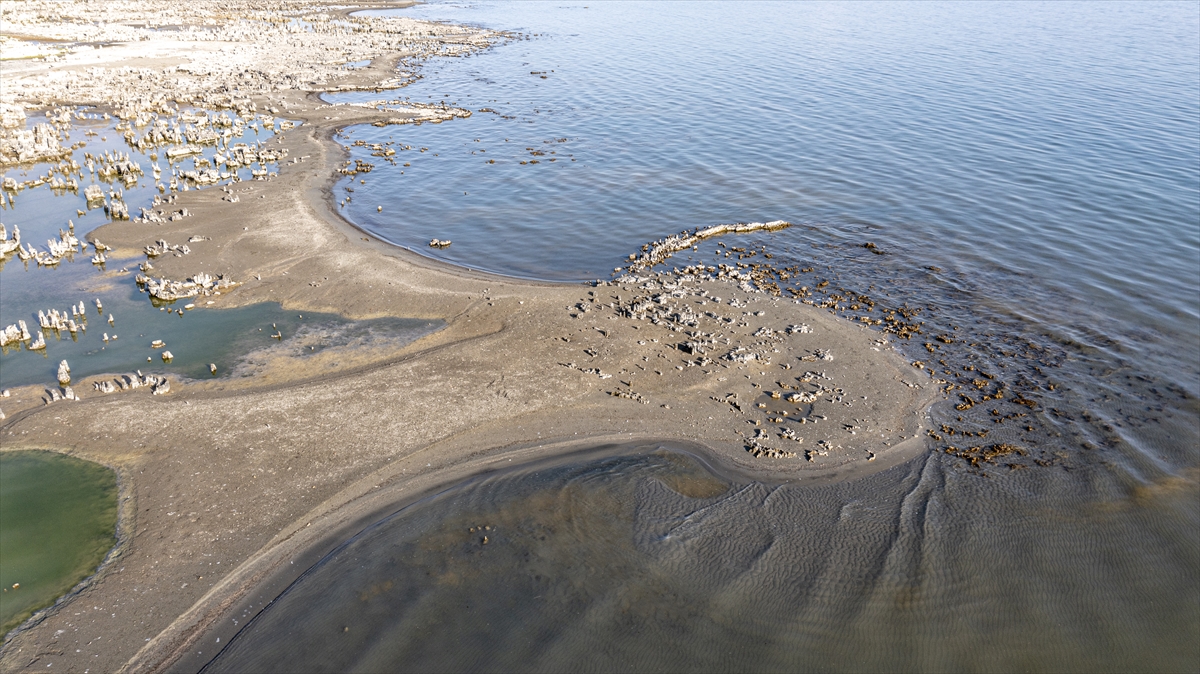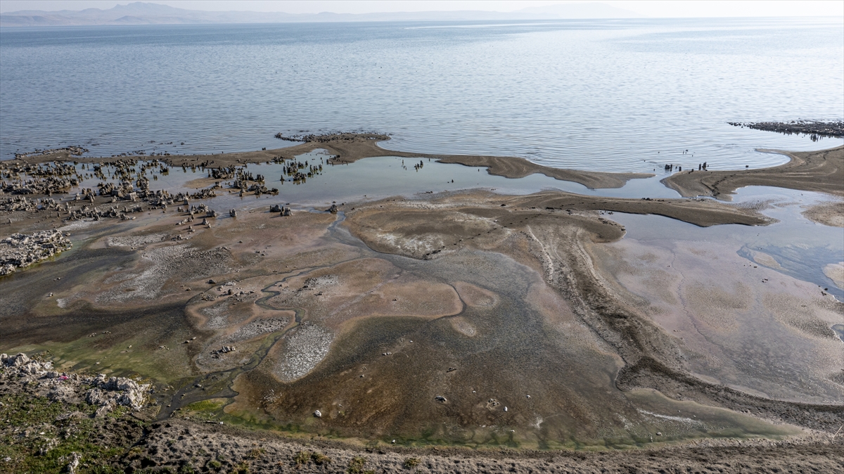 Sıcaklıkların artmasına bağlı buharlaşma ve yağışların azalmasıyla seviyesi düşen Van Gölü`nün kıyı kesimlerinde, asırlar önce su altında kalan yapılar ortaya çıkmaya devam ediyor.