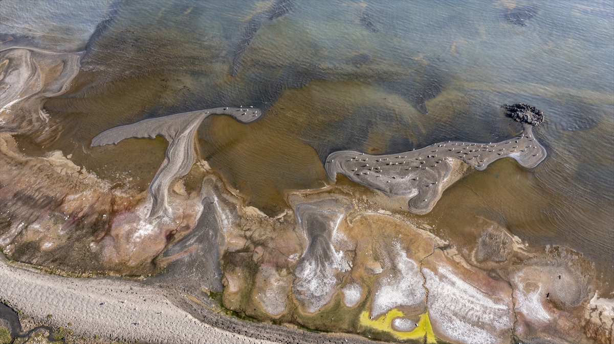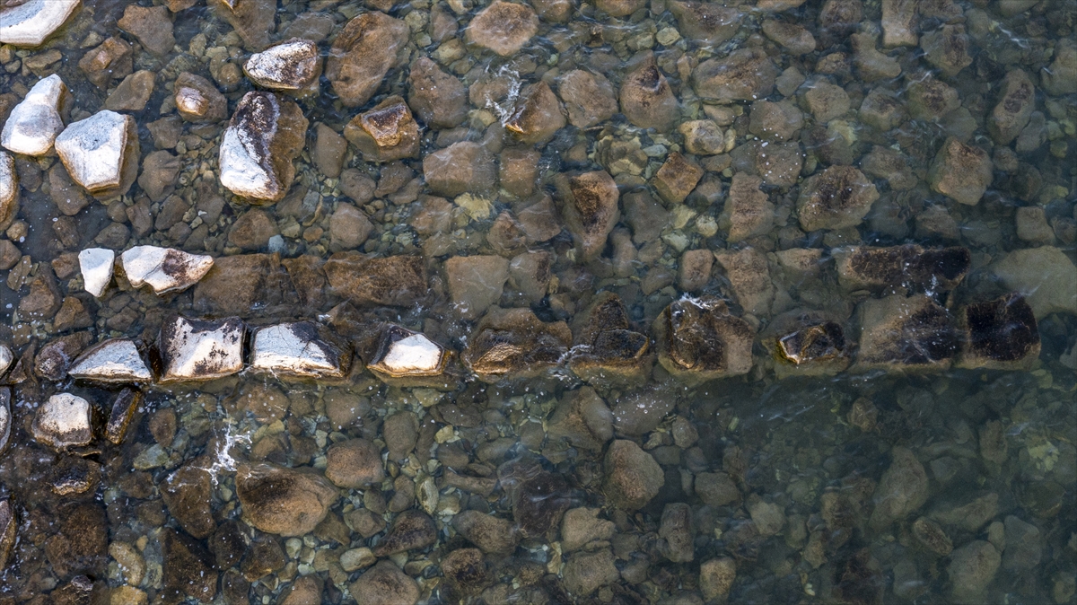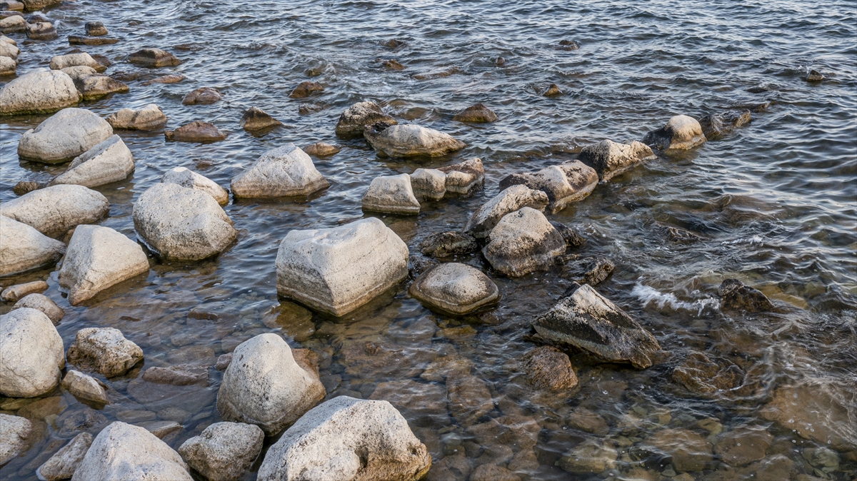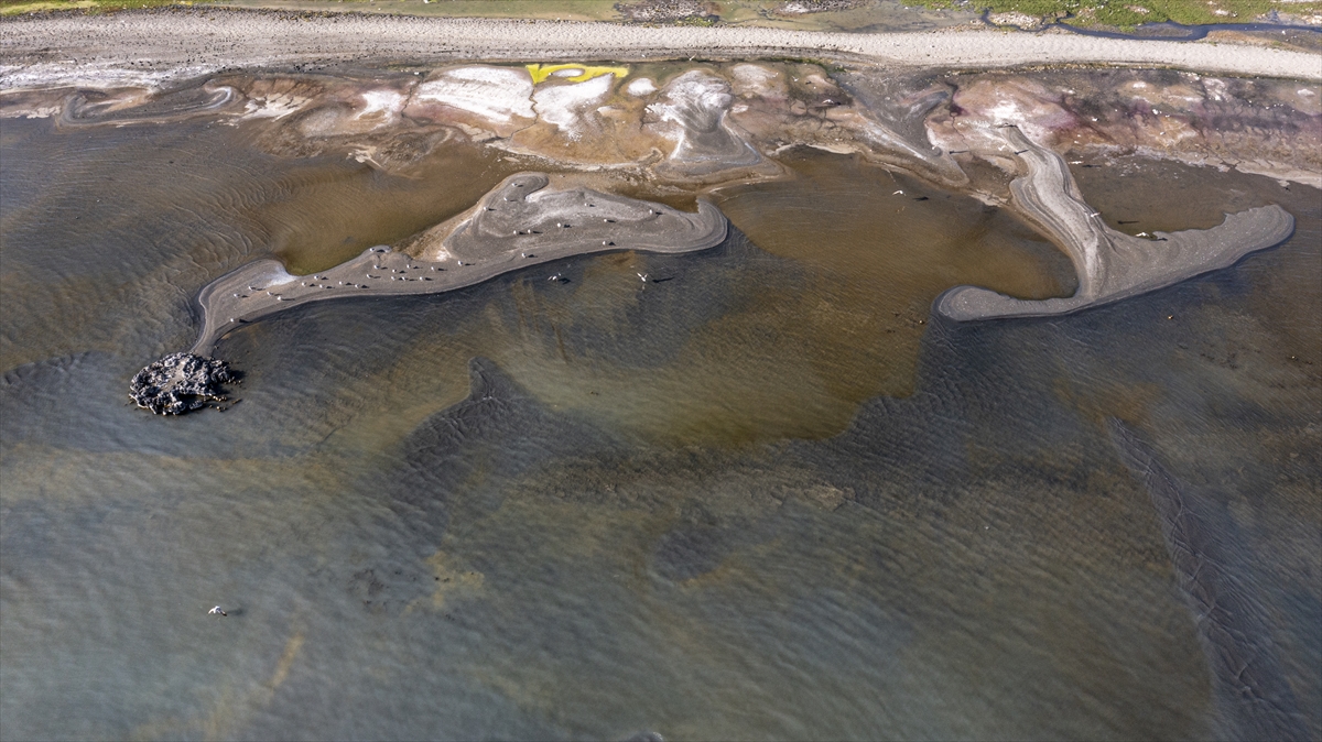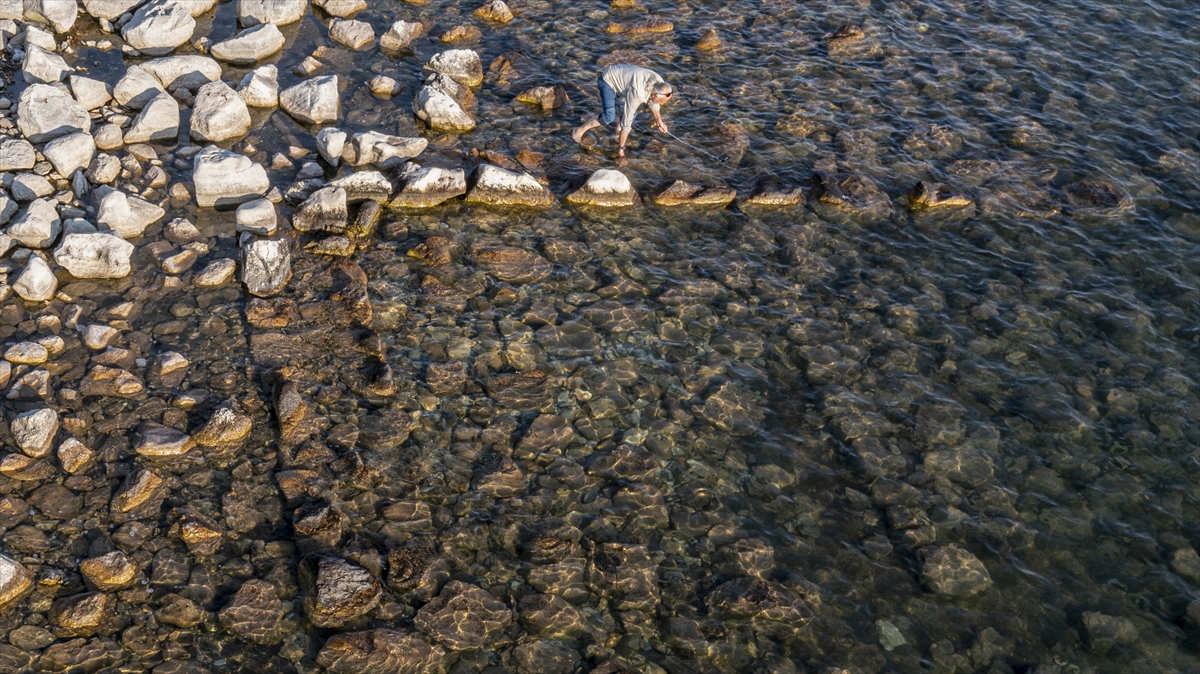 Sıcaklıkların artmasına bağlı buharlaşma ve yağışların azalmasıyla seviyesi düşen Van Gölü`nün kıyı kesimlerinde, asırlar önce su altında kalan yapılar ortaya çıkmaya devam ediyor.