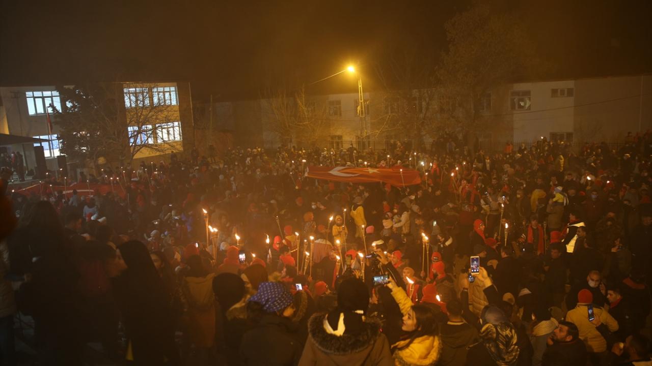 İl Jandarma Komutanı Tuğgeneral İbrahim Güven, Vali Yardımcıları Tekin Erdemir ve Furkan Seymen, Adilcevaz Kaymakamı İsmail Demir, Ahlat Kaymakamı Fikret Dağ, Belediye Başkanı Necati Gürsoy ve kaymakamlık önünde toplanan ilçe sakinleri, mehteran takımı, Türk bayrakları ve meşaleler eşliğinde Rabia Hatun İmam Hatip Lisesi bahçesine yürüdü.