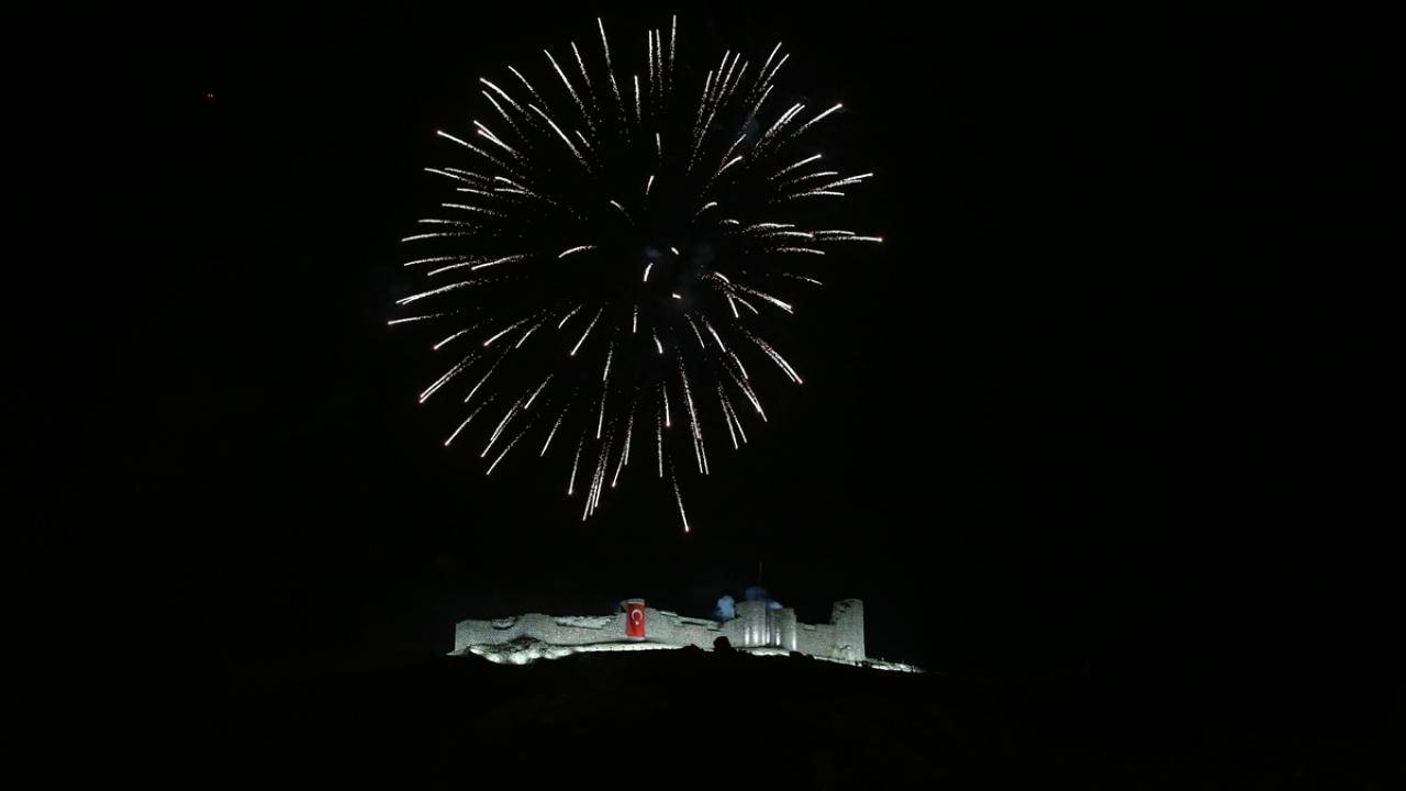 16 Türk devleti ve Türkiye Cumhuriyeti’ni temsilen 17 top atışının ardından, havai fişek gösterisiyle aydınlatma ışıkları açıldı.