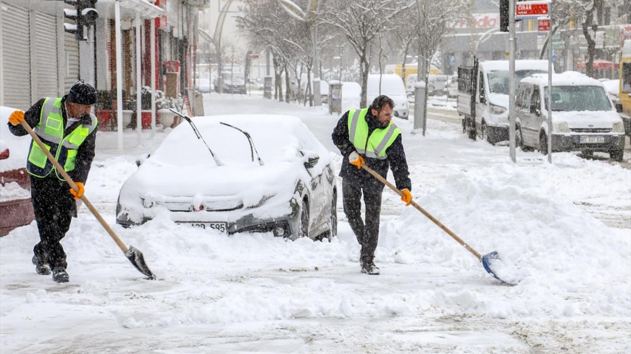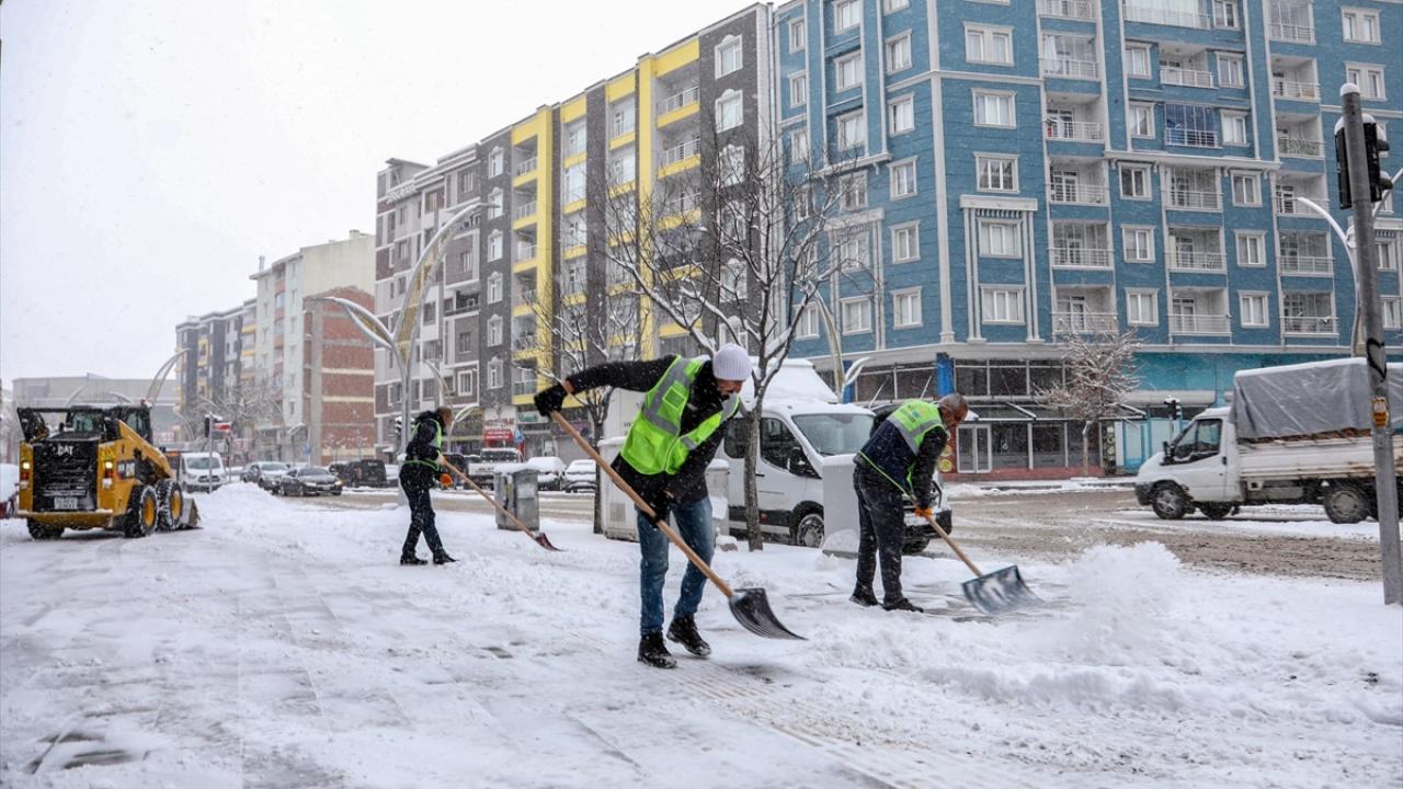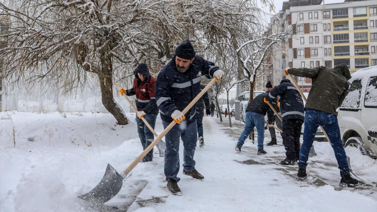 Kar yağışının etkisini sürdürdüğü kentte, cadde ve kaldırımlarda kar temizleme ve küreme çalışmaları yapılıyor.
