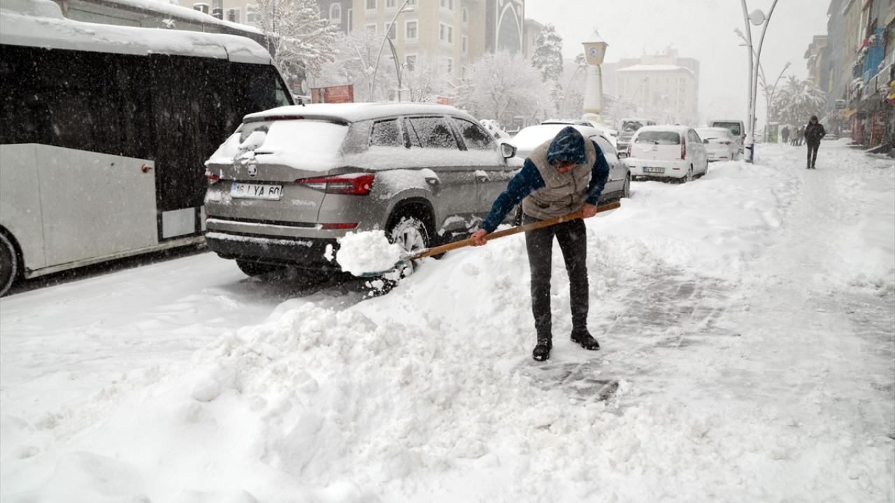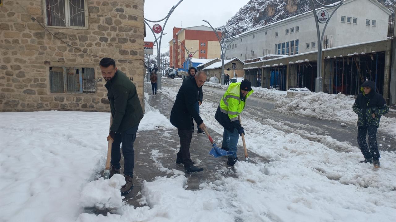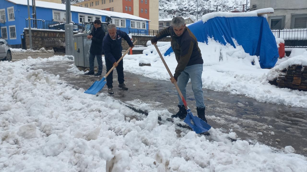 Sürücülerin kar nedeniyle ilerlemekte güçlük çektiği kentte vatandaşlar, ev ve işyerlerinin önündeki kar birikintilerini temizledi.