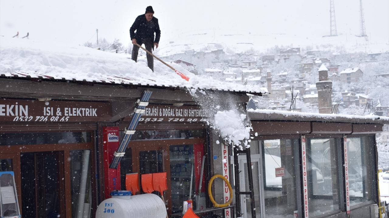 Yüksek rakımlı bölgelerdeki tek katkı evlerin ve araçların karla kaplandı, bazı vatandaşlar da evlerin damındaki karları temizlemek için çaba sarf etti.