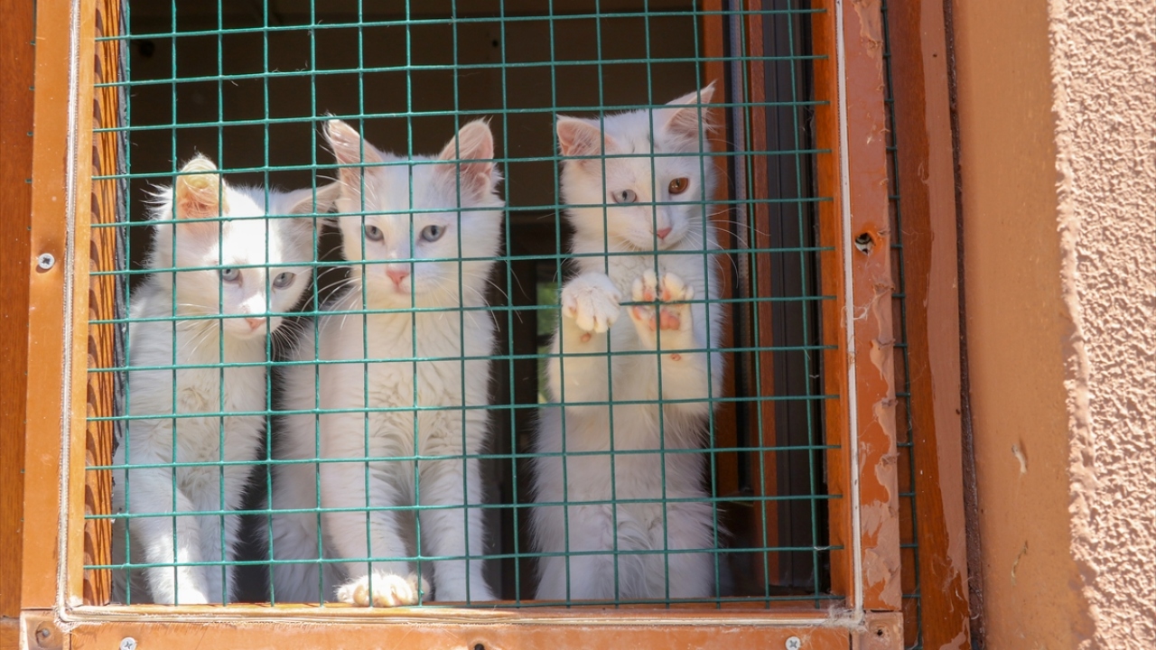 Koronavirüs tedbirleri kapsamında 5 Mart`ta ziyarete kapatılan YYÜ bünyesindeki Van Kedi Villası`ndaki kediler, salgına karşı özenle korunuyor.