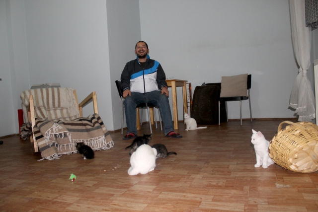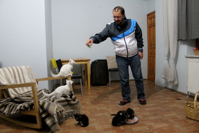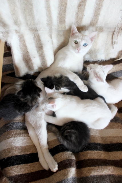 Van kedisi, annesiz kalan yavruları emziriyor