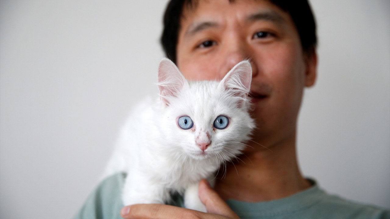 Çinli Sun Pıng, Van kedisi için yaklaşık 7 bin kilometre uzaklıktan geldiği Kayseri'de istediği kediyi sahiplenmenin mutluluğunu yaşadı.