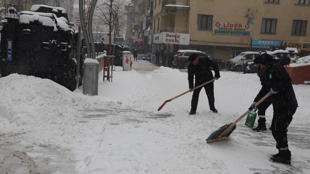 Ulaşımda aksama yaşanmaması için yol genişletme çalışmalarına devam eden ekipler, cadde ve kaldırımlarda biriken karları da temizliyor.