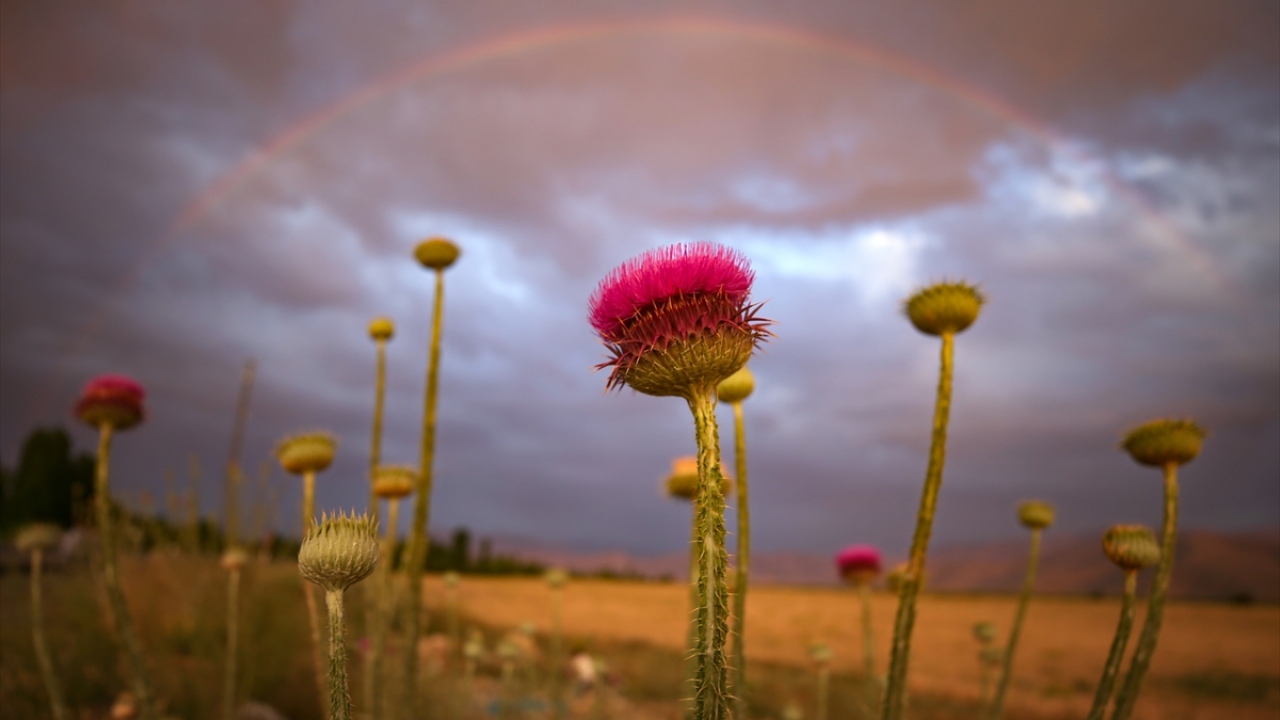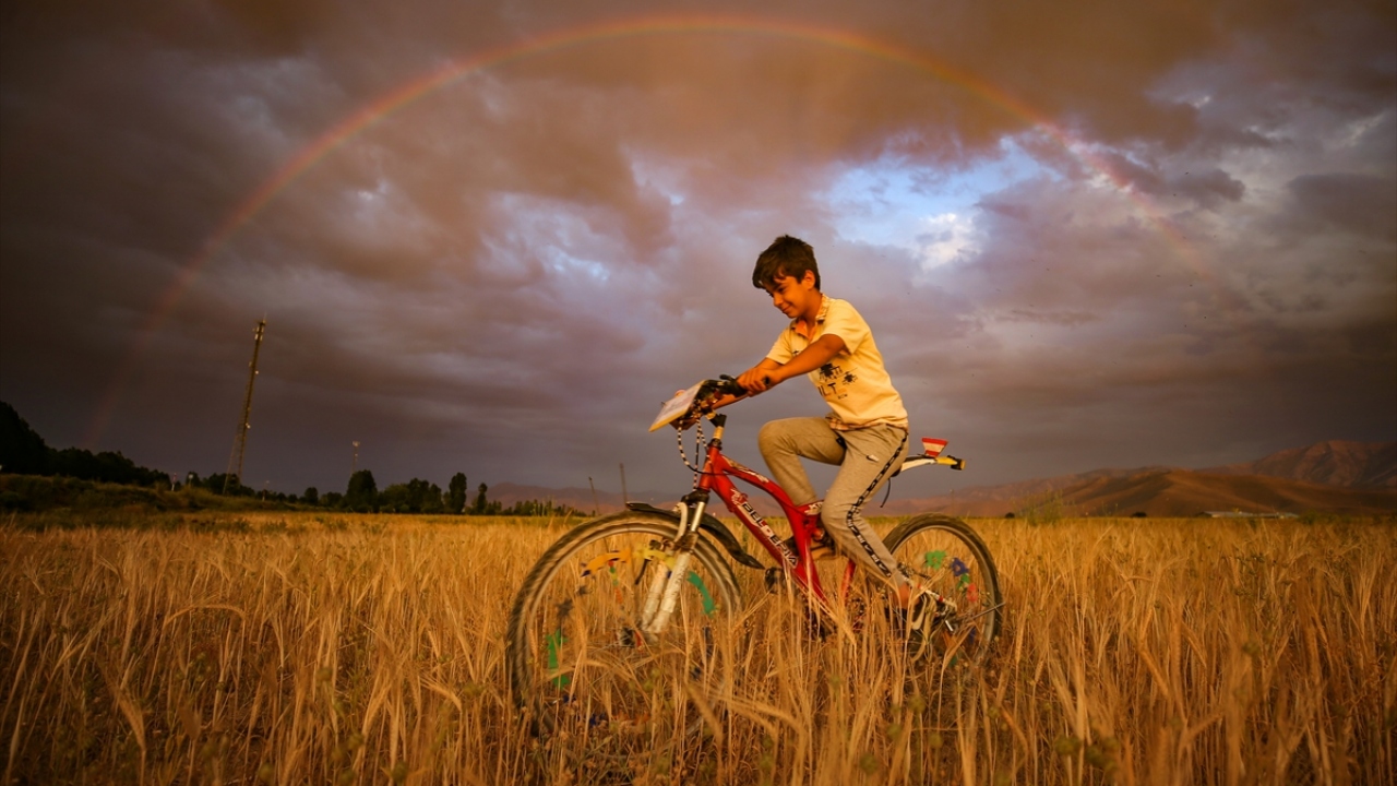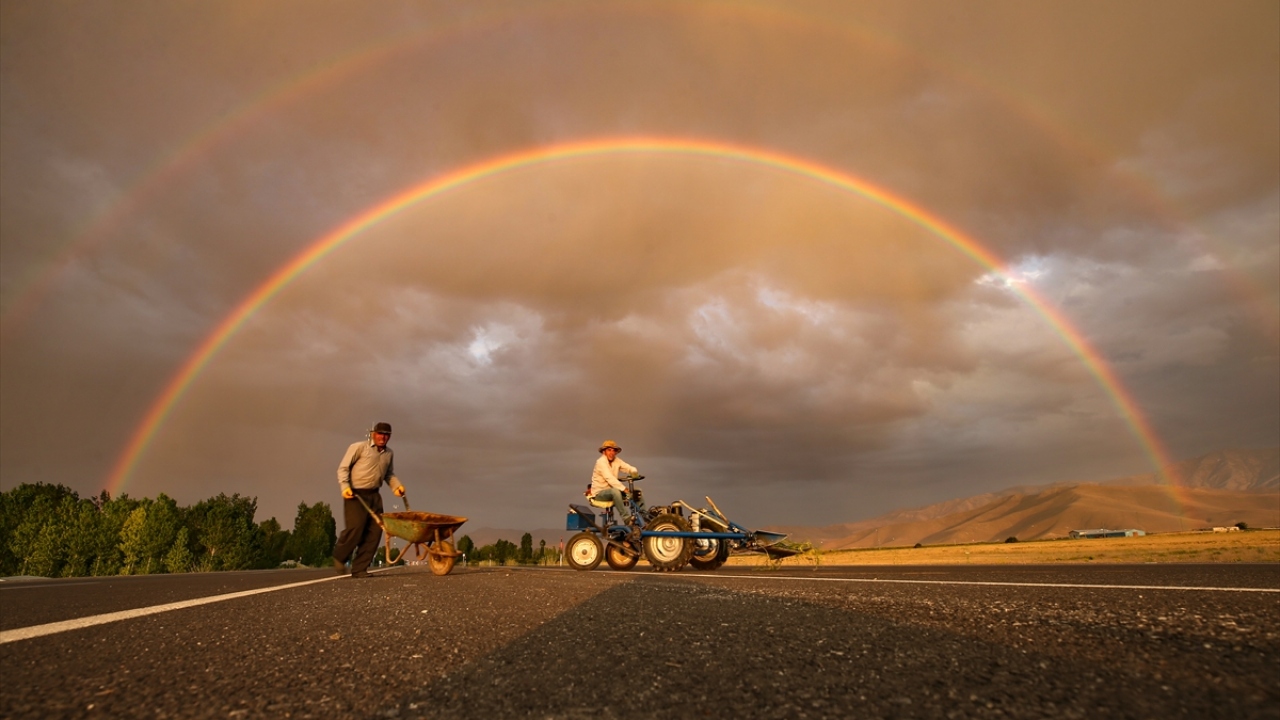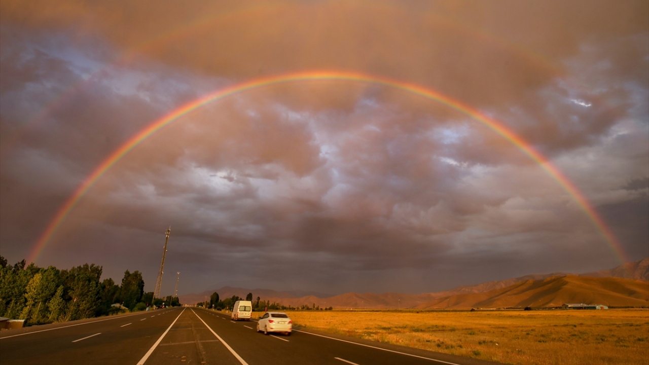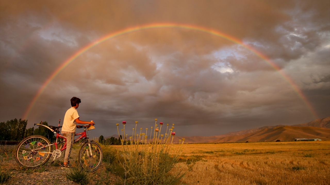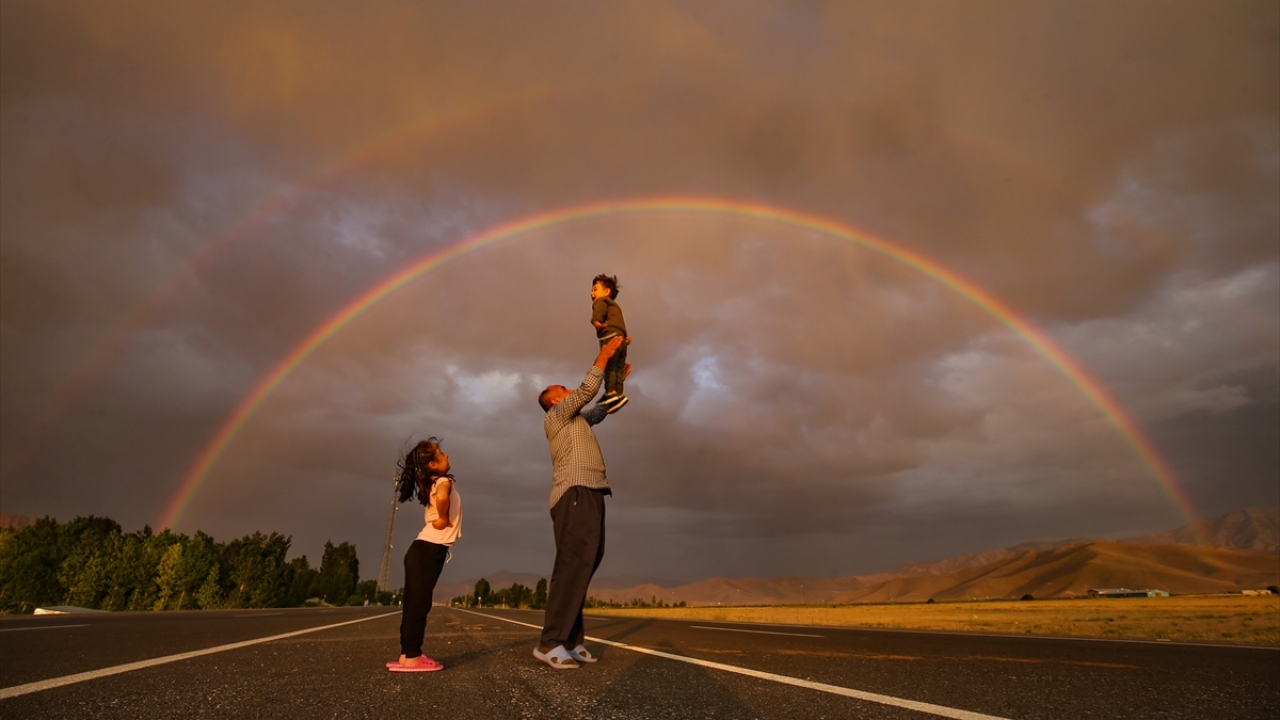 Van'ın Edremit ilçesinde etkili olan yağmurun ardından gökkuşağı oluştu. Semayı renklendiren gökkuşağı güzel görüntüler sergiledi.