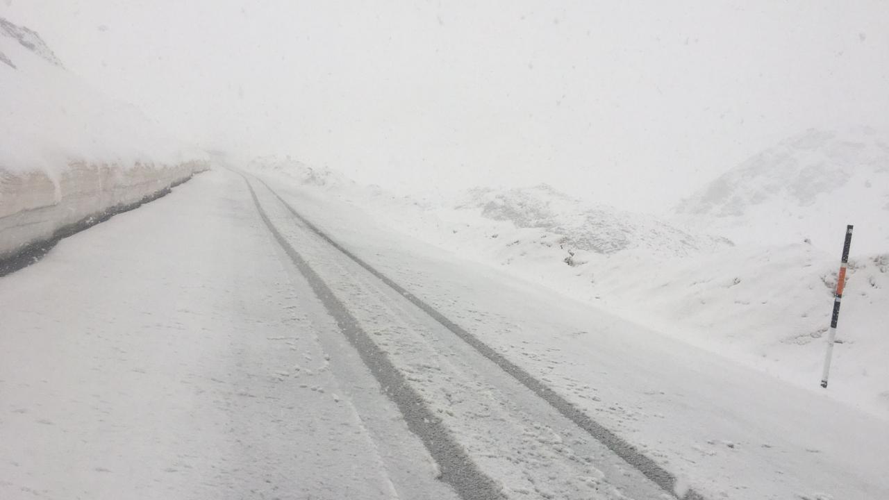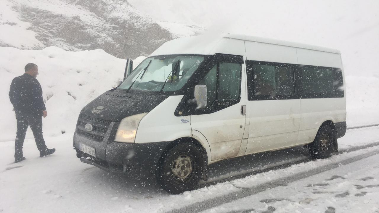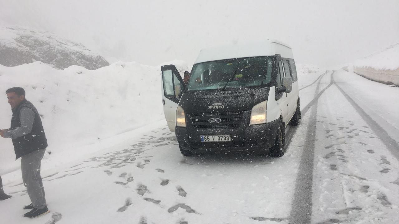 Kar kalınlığının 10 santimetreye ulaştığı Van-Bahçeraray kara yolundaki sürücüler zor anlar yaşadı.