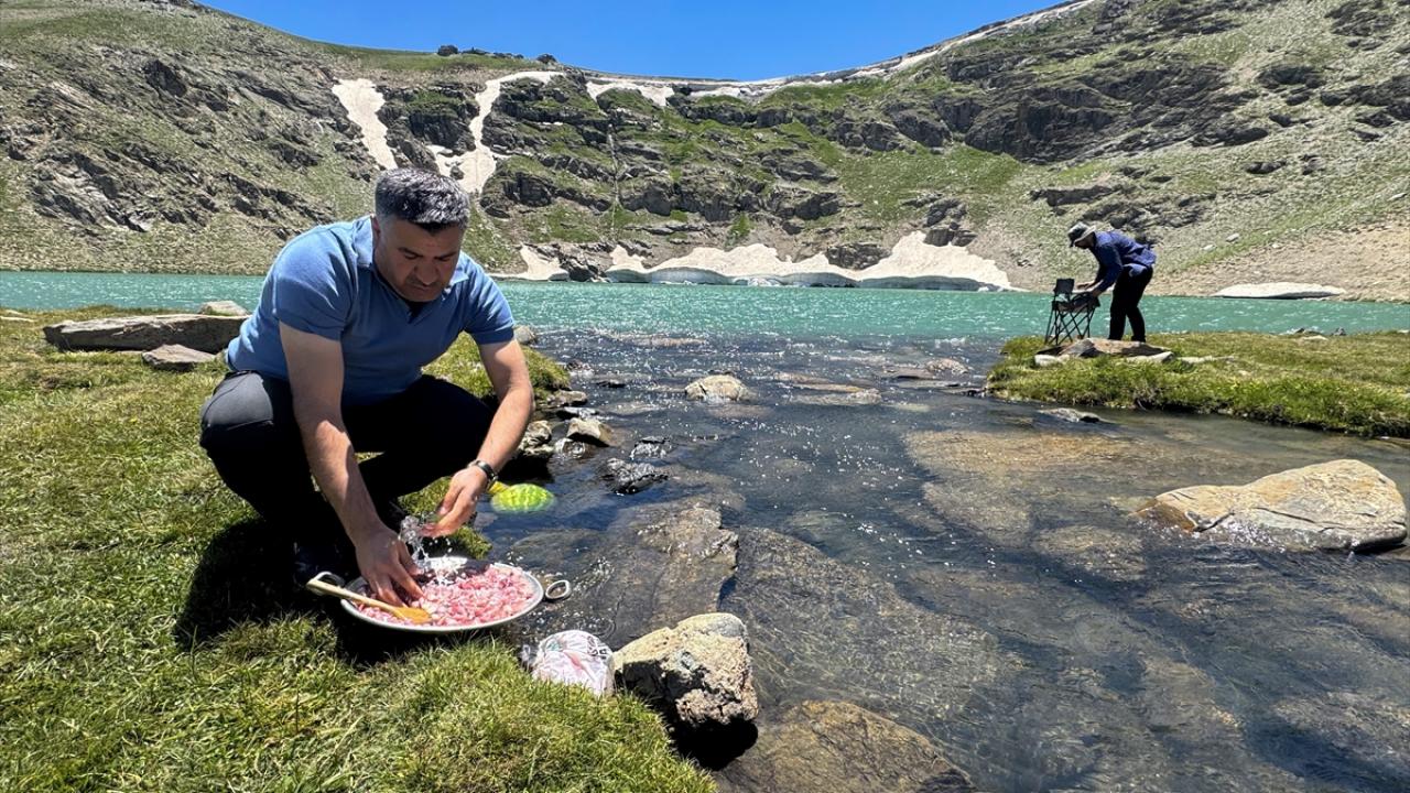 Türkiye`nin en yüksek rakımlı göllerinden biri olan buzul gölünde yüzerek serinleyen doğaseverler, huzurlu bir ortamda halay çekerek keyifli vakit geçirdi.