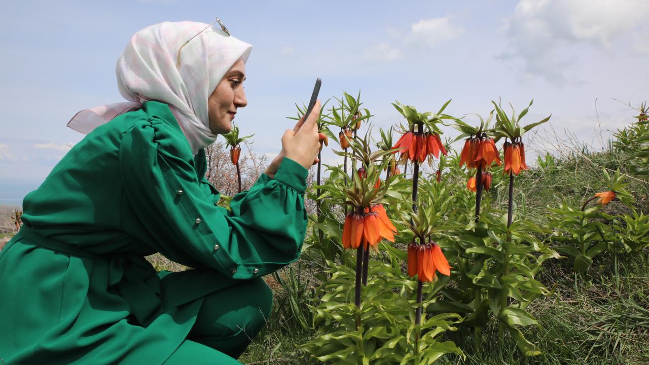Van'ın Gevaş ilçesinde doğal olarak yetişen ve halk arasında "ağlayan gelin" veya "hüzün çiçeği" olarak bilinen ters laleler, güzellikleriyle doğayı süslüyor.