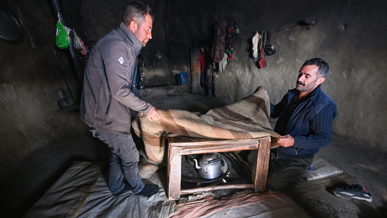 Soğuk havaların vazgeçilmezi olan kürsü geleneğiyle aile bağlarını güçlendiren mezradakiler, birbirlerine destek olarak yardımlaşma örneği de sergiliyor.