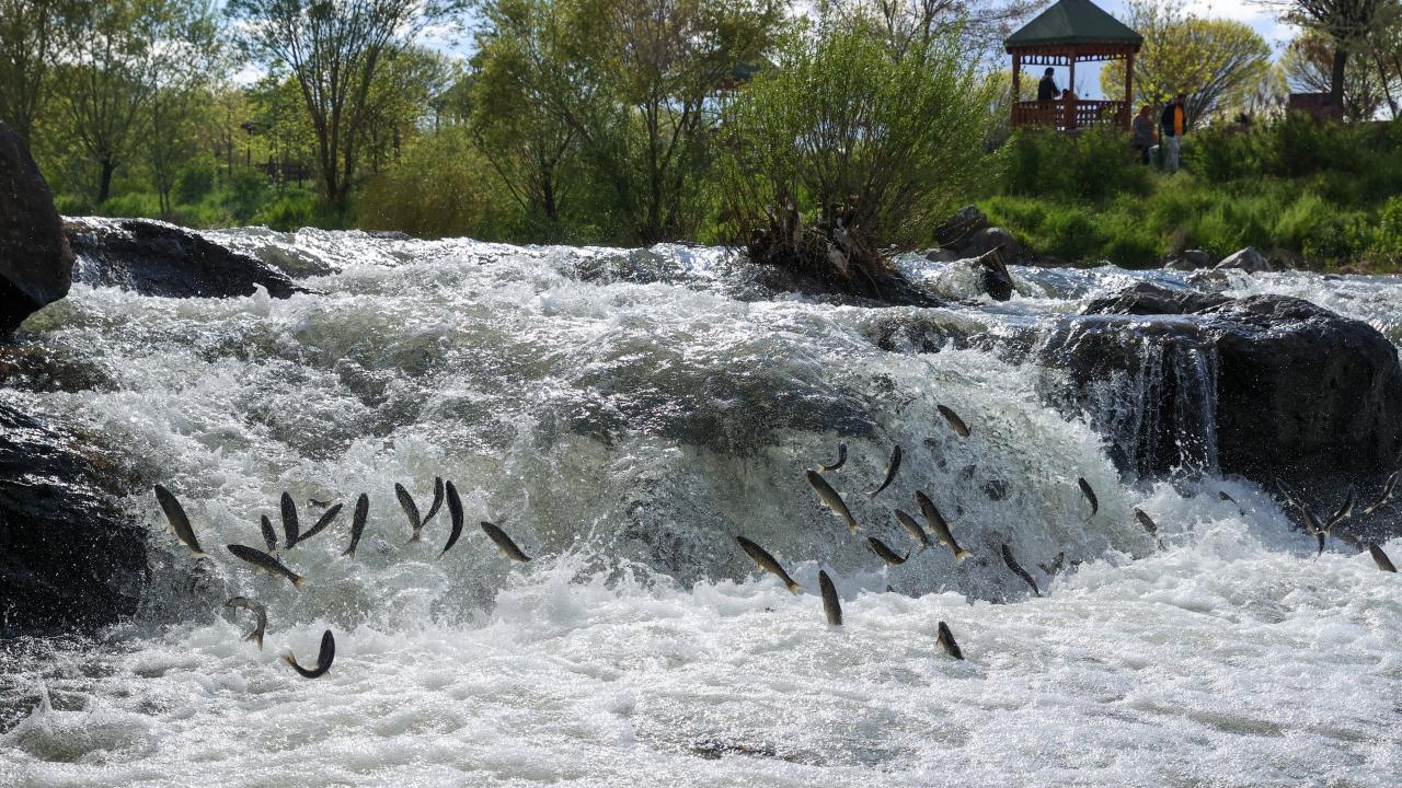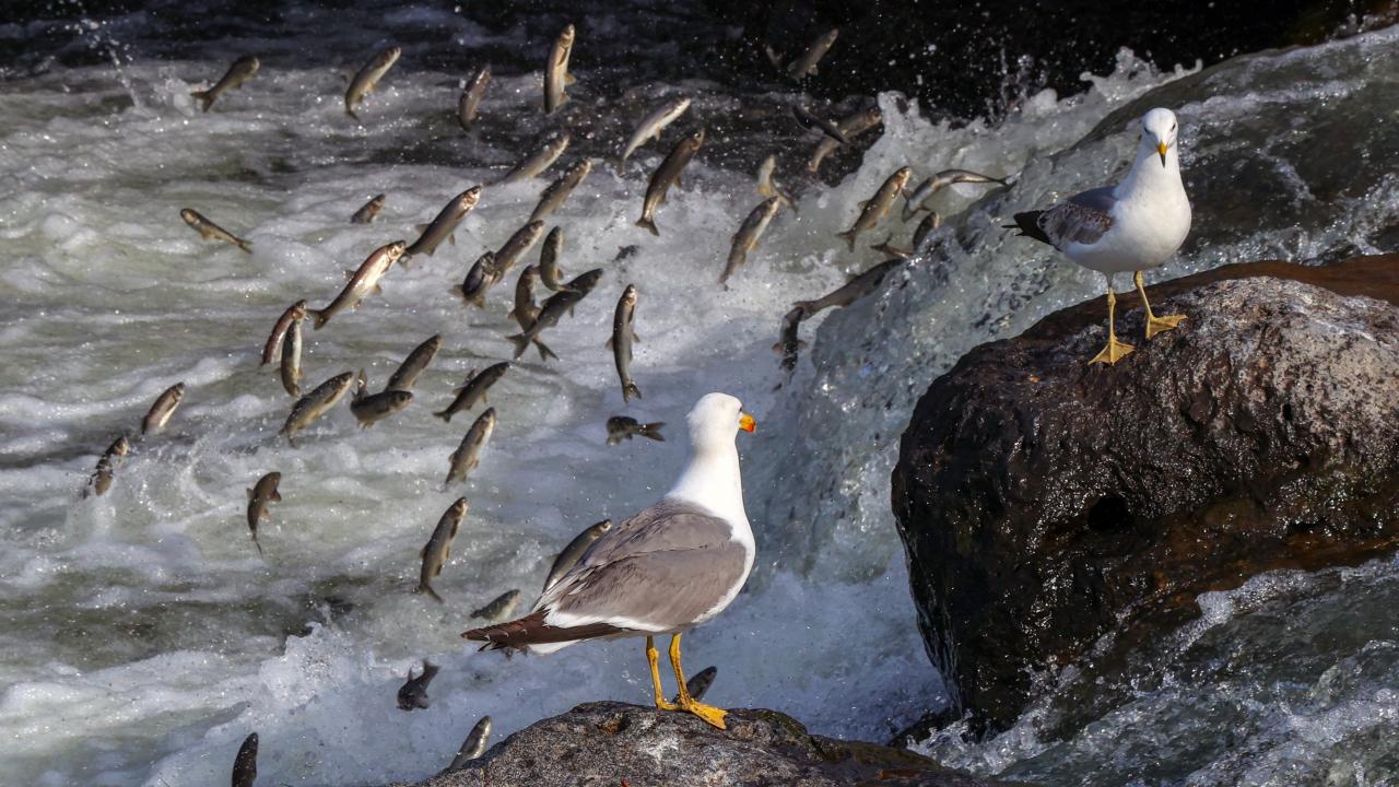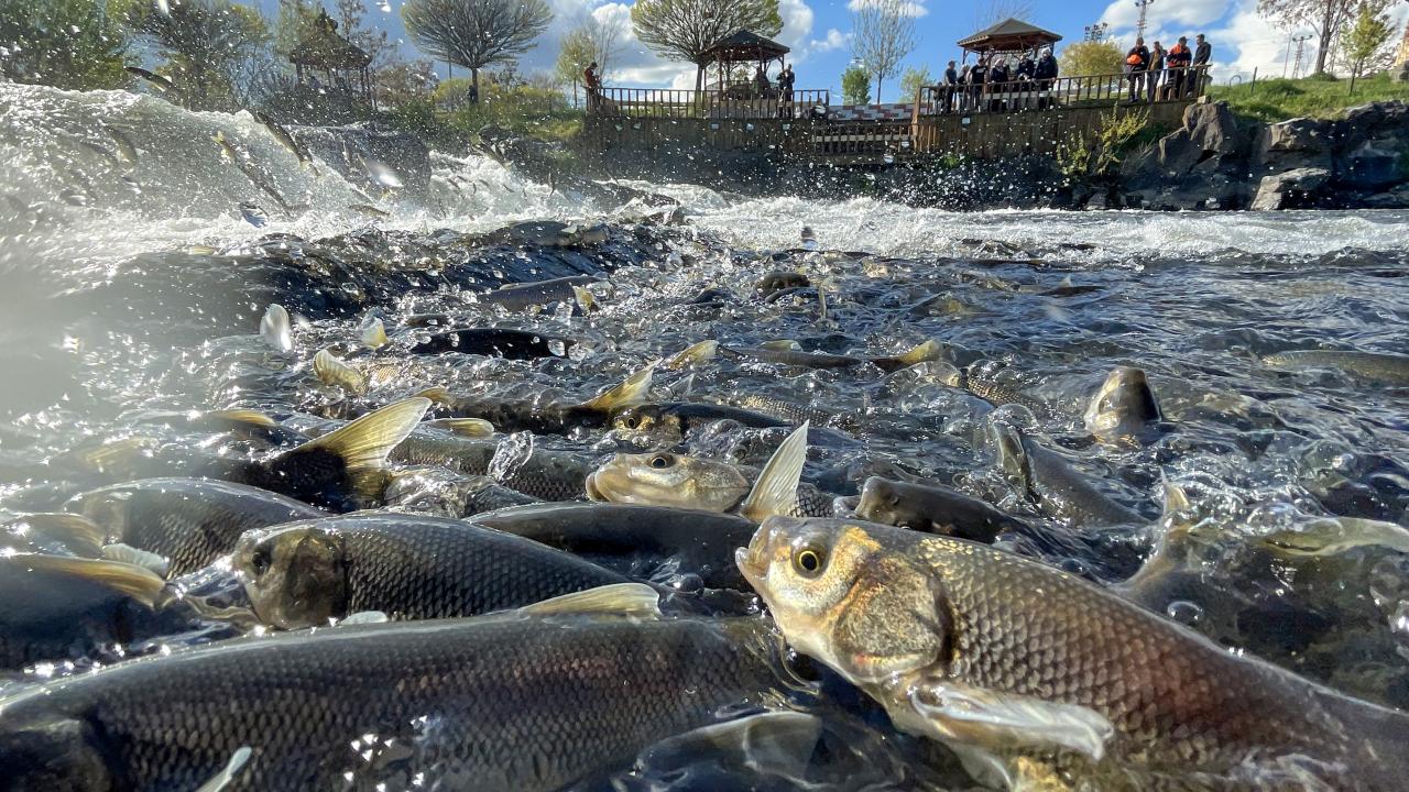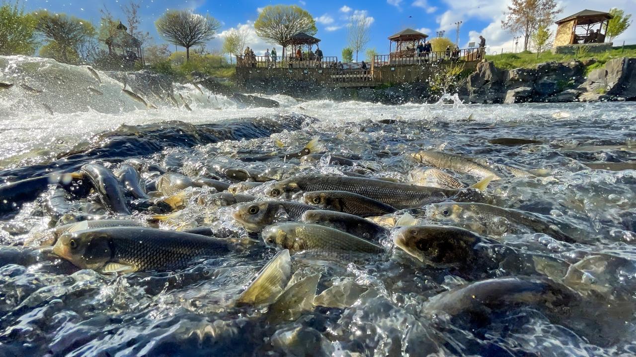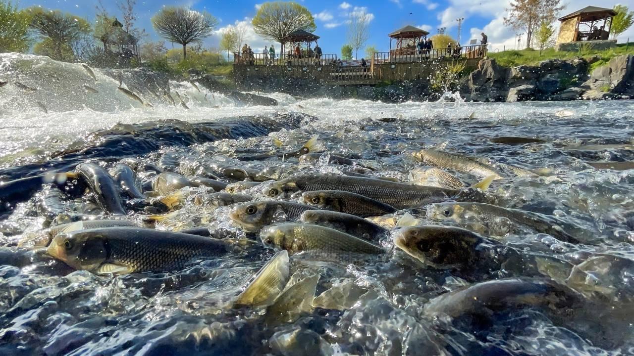 Van Gölü'nde yaşayan ve üreme döneminde suyun akışının tersine yüzerek tatlı sulara göç eden inci kefalleri, ortaya koyduğu mücadeleyle izleyenlerin ilgisini çekiyor.