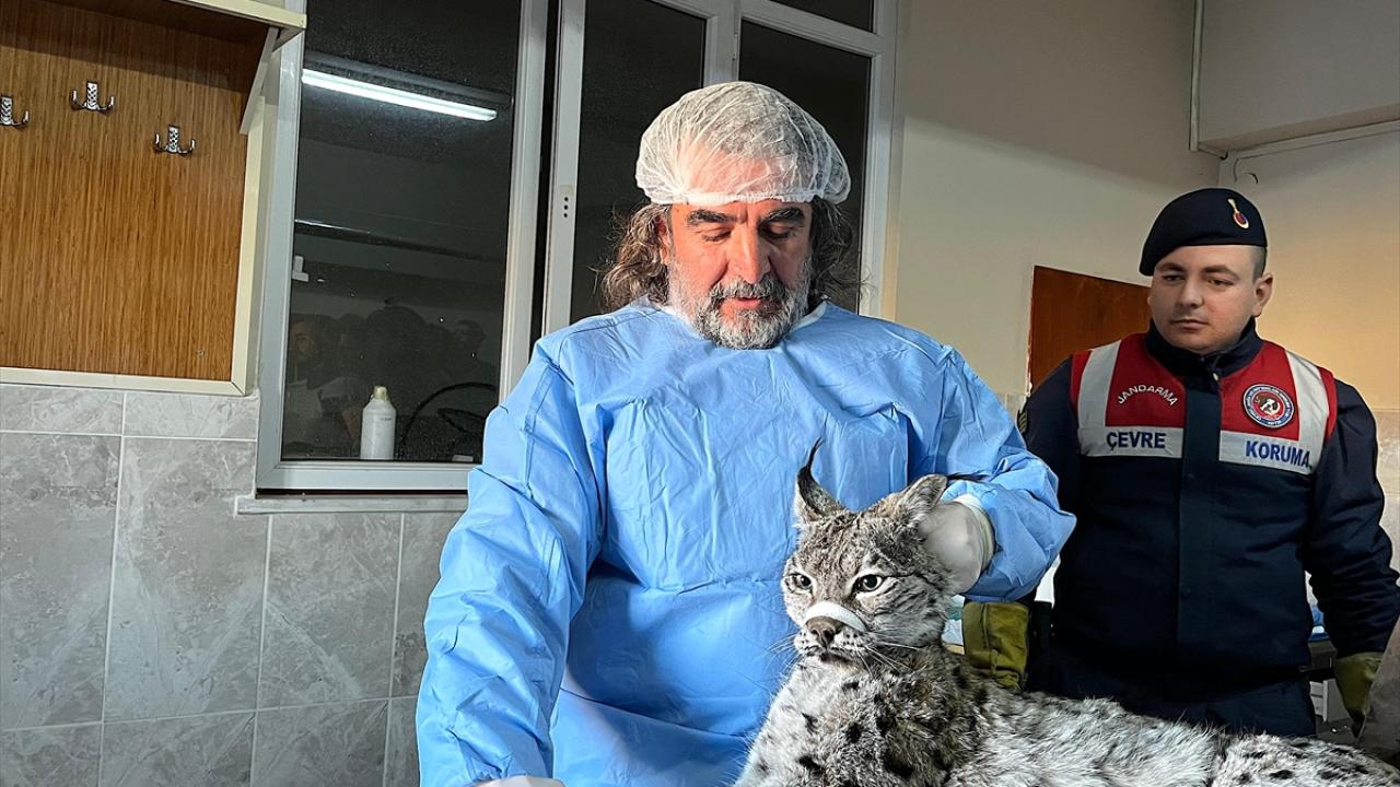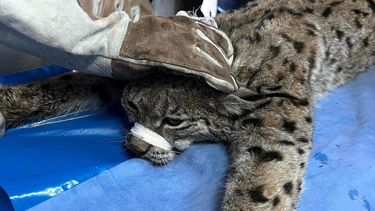 Van'ın Gevaş ilçesinde bitkin halde bulunan vaşak, Van Yüzüncü Yıl Üniversitesi (YYÜ) Yaban Hayvanları Koruma ve Rehabilitasyon Merkezi'nde tedavi altına alındı.