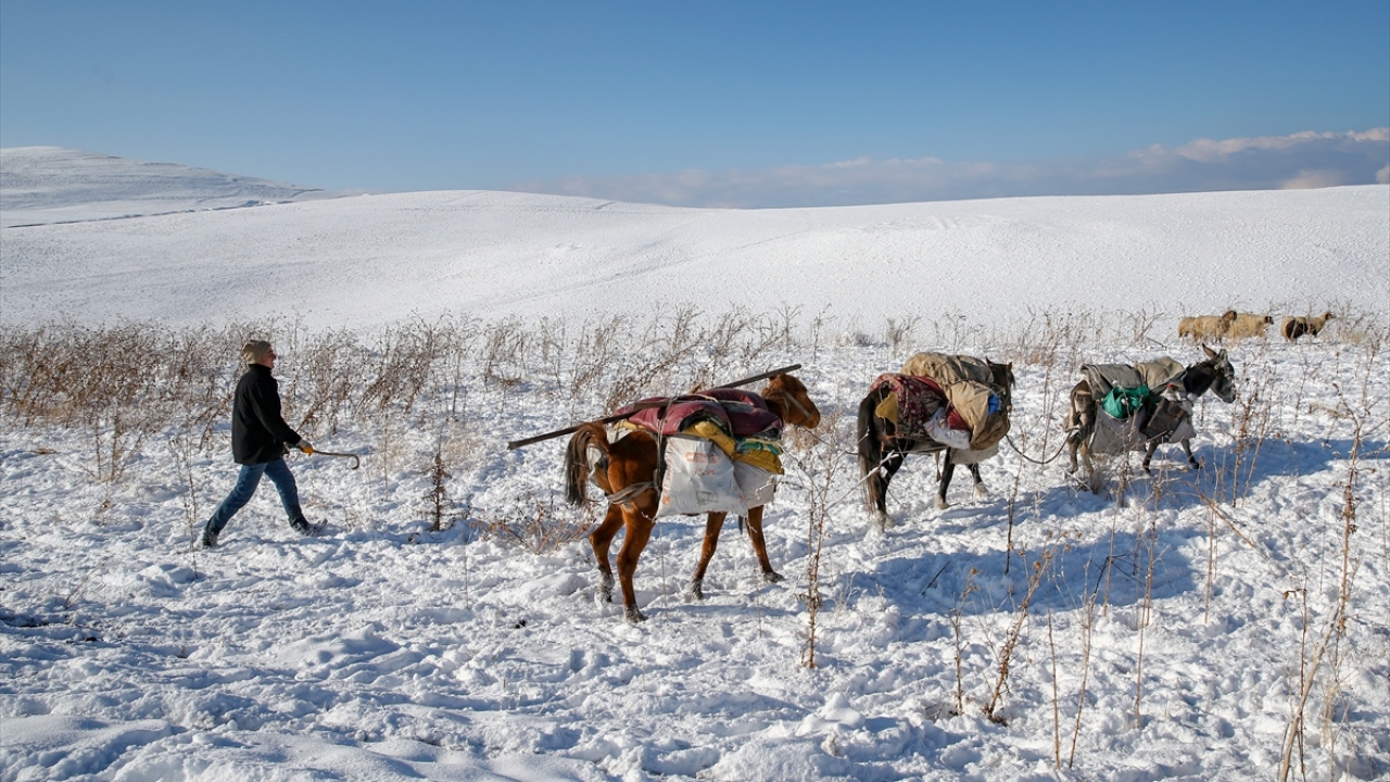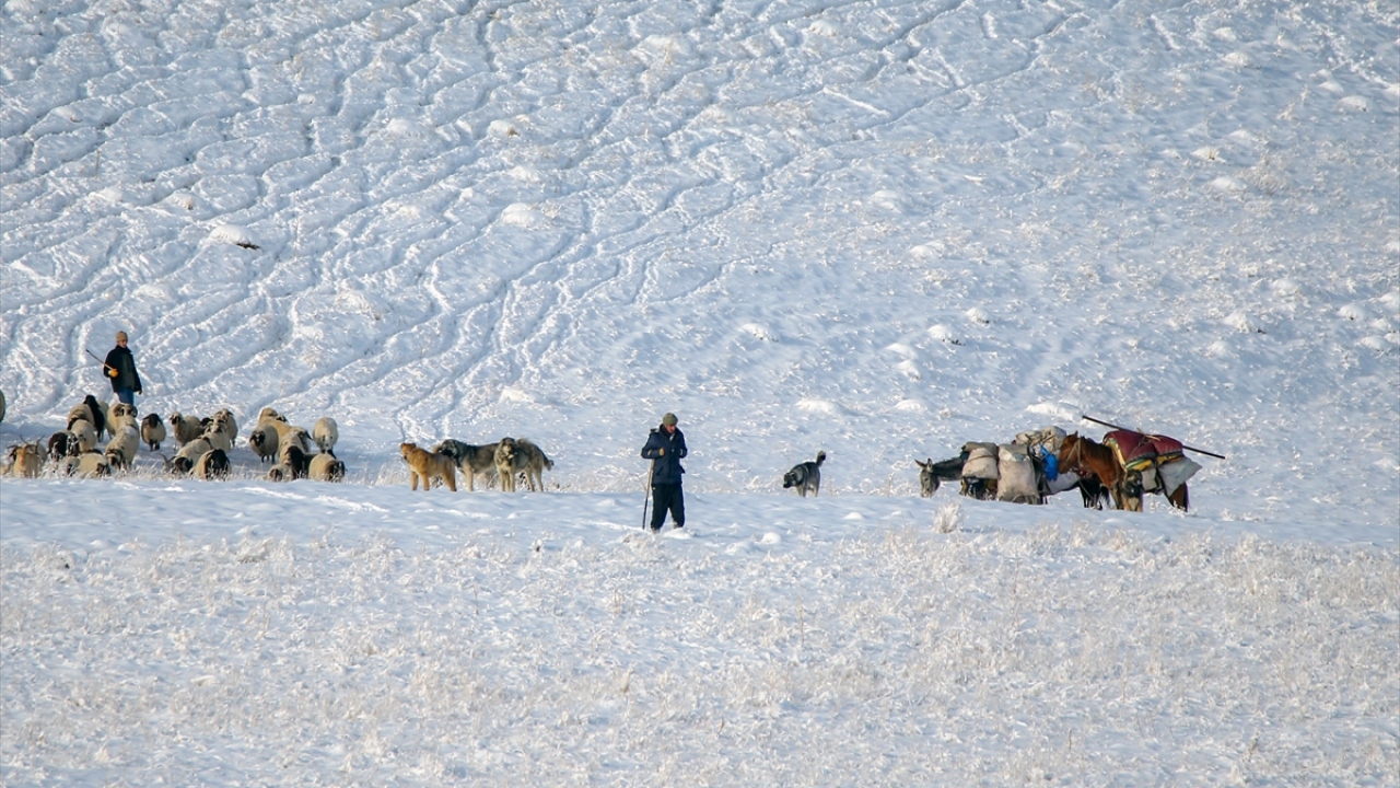 Karla kaplı dağlarda sürülerini zor şartlarda ilerleten çobanlardan Çoban Adem Yılmaz, havaların soğumasıyla sürülerini yayladan indirdiklerini söyledi.