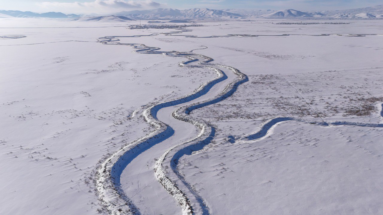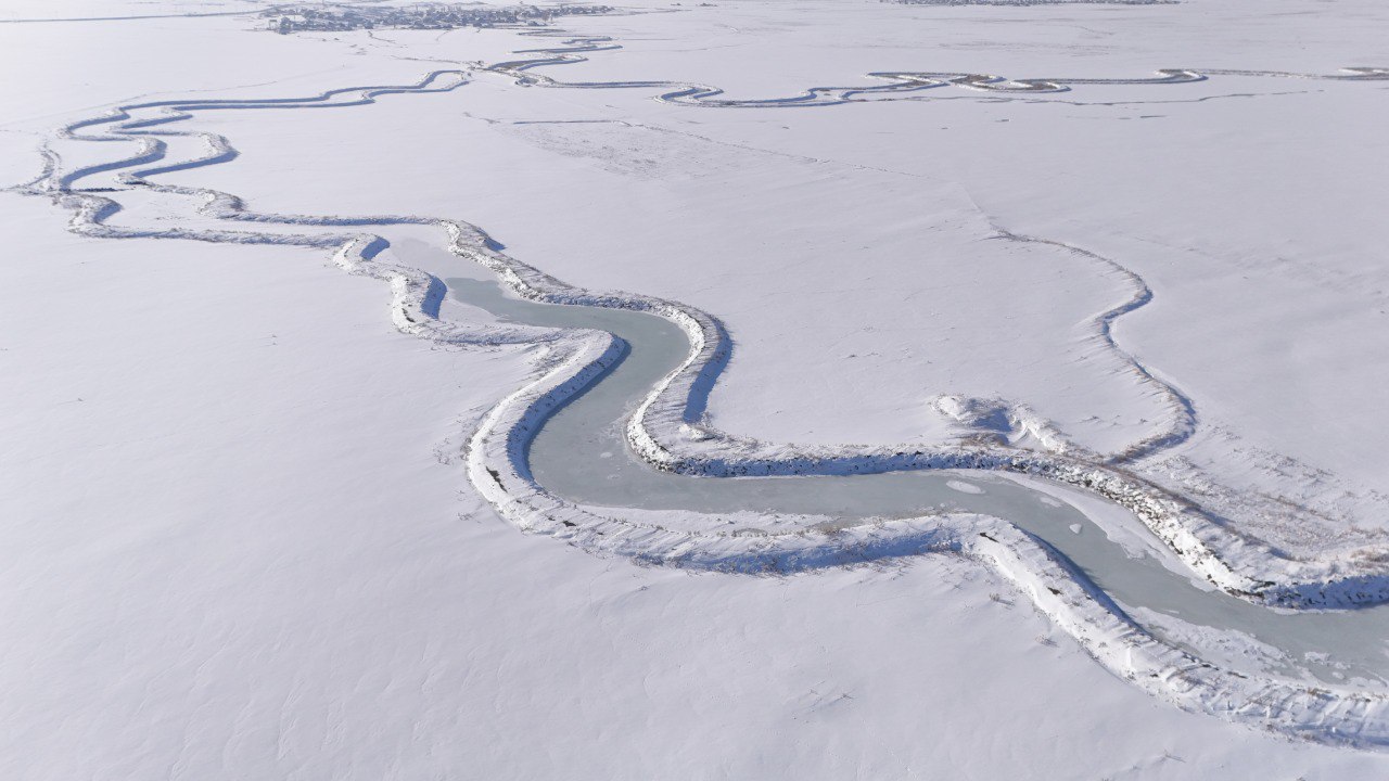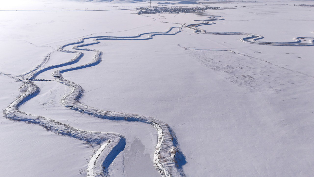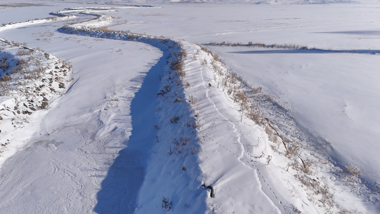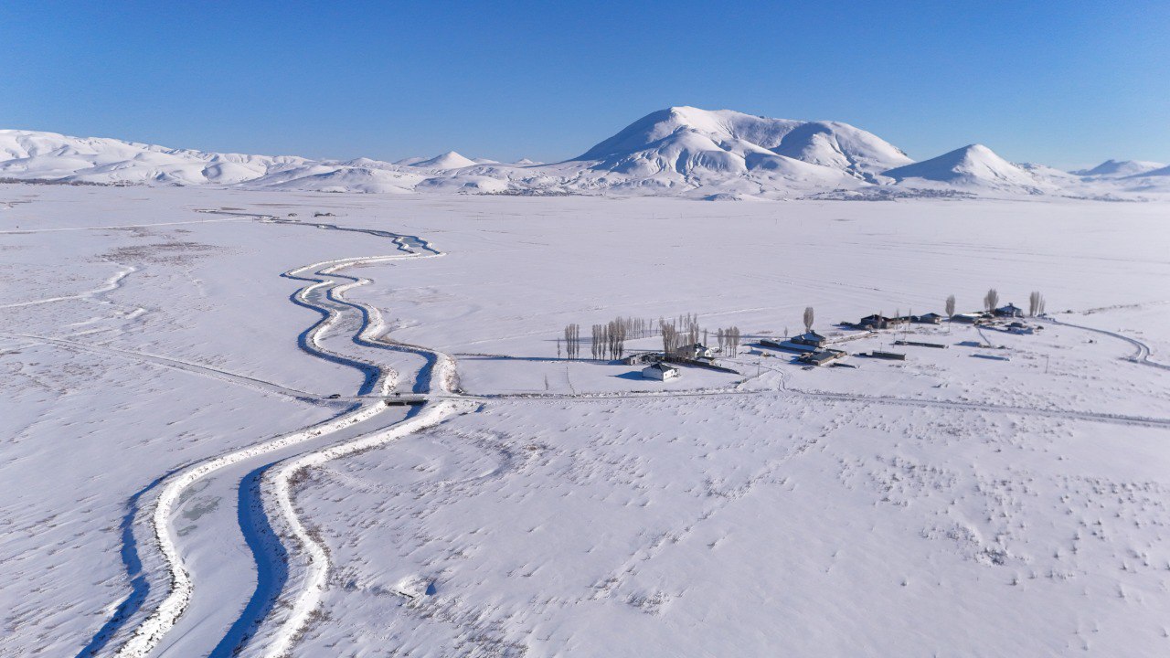 Yüzeyi tamamen donan Çubuklu Çayı, dron ile görüntülendi.